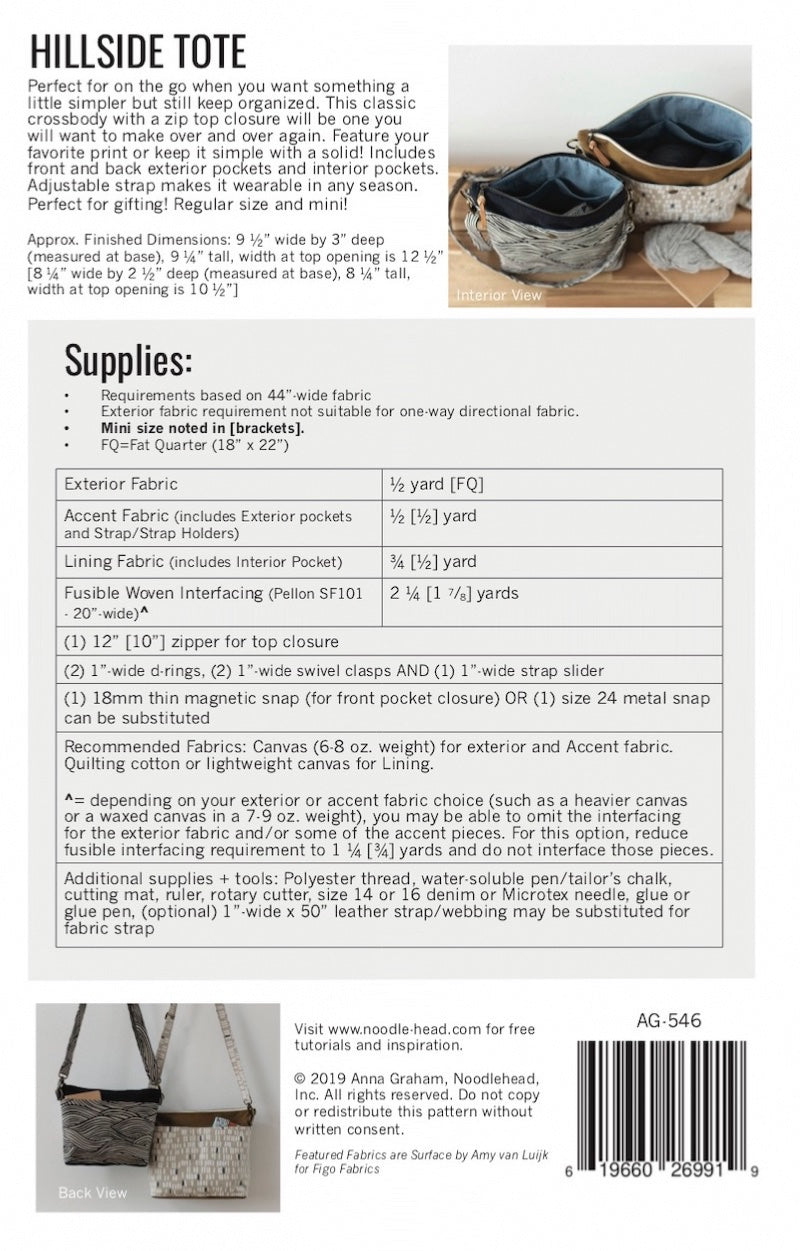 The Hillside Tote is a classic crossbody with a zip top closure and will be one you will want to make over and over again.