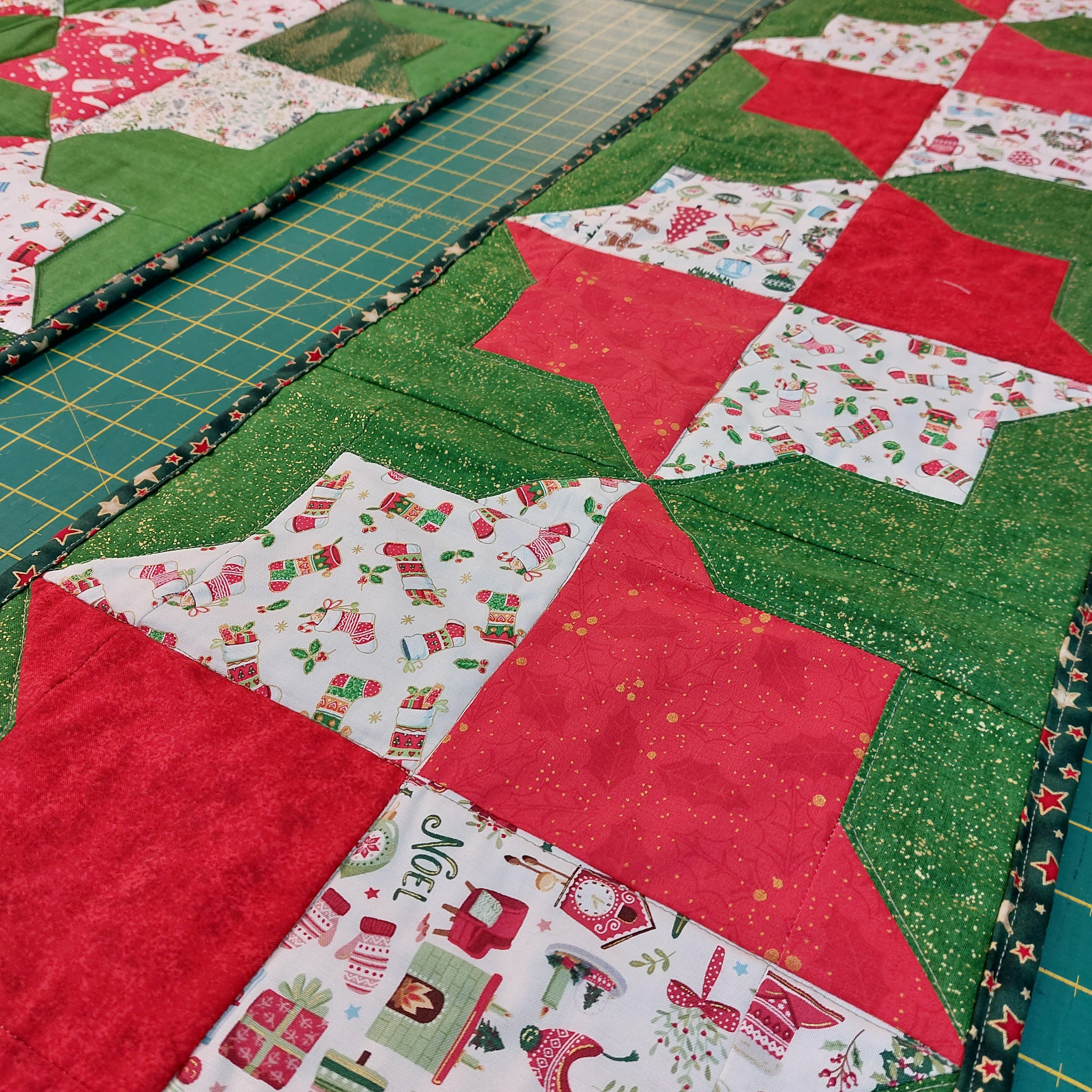 There are 2 table runner designs to choose from- the Diagonal Runner (we used Good Tidings from Makower) or Double Square Star (see the photos for each one).