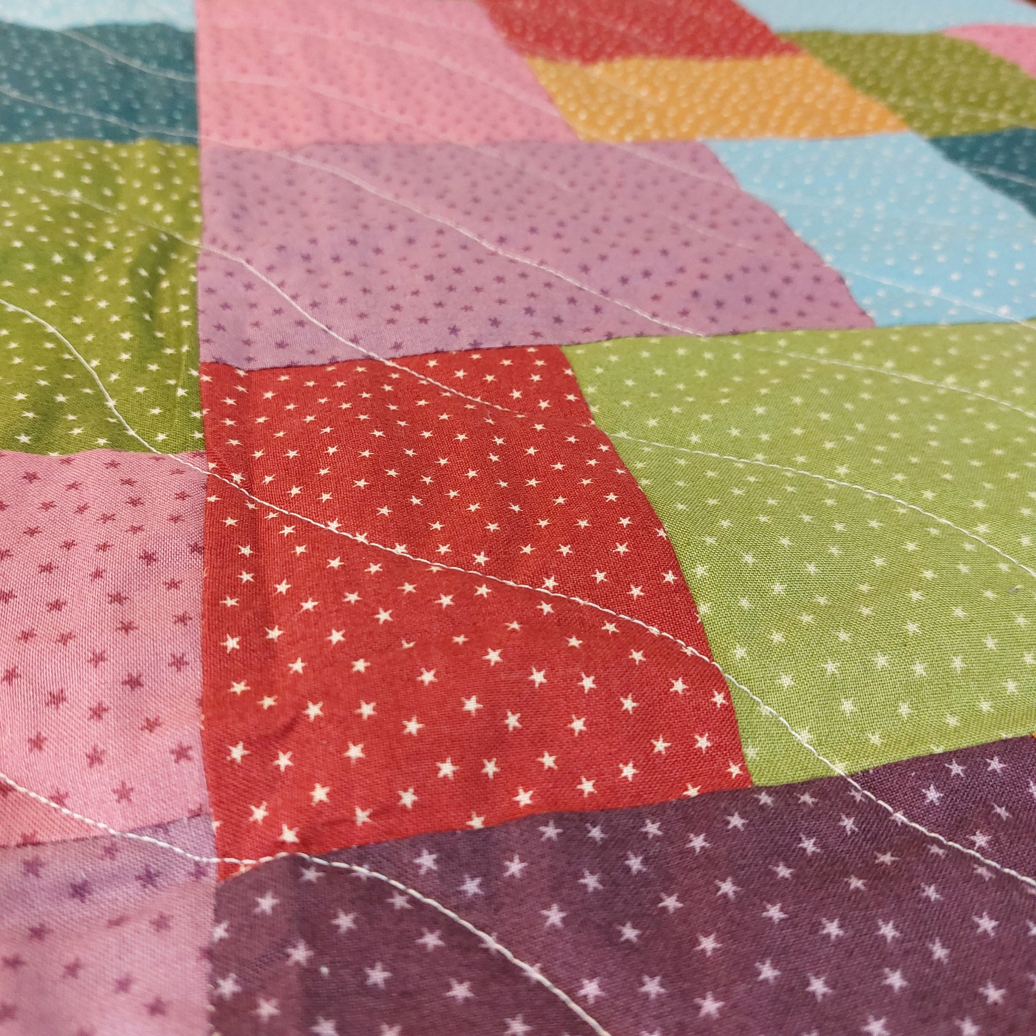 The instructions are included in the price of the class but the materials are not. This project is fat quarter friendly. Our sample in the shop uses the Twinkle range from Andover fabrics (available here whilst stocks last). We used a lot of colours but the palette can be less.