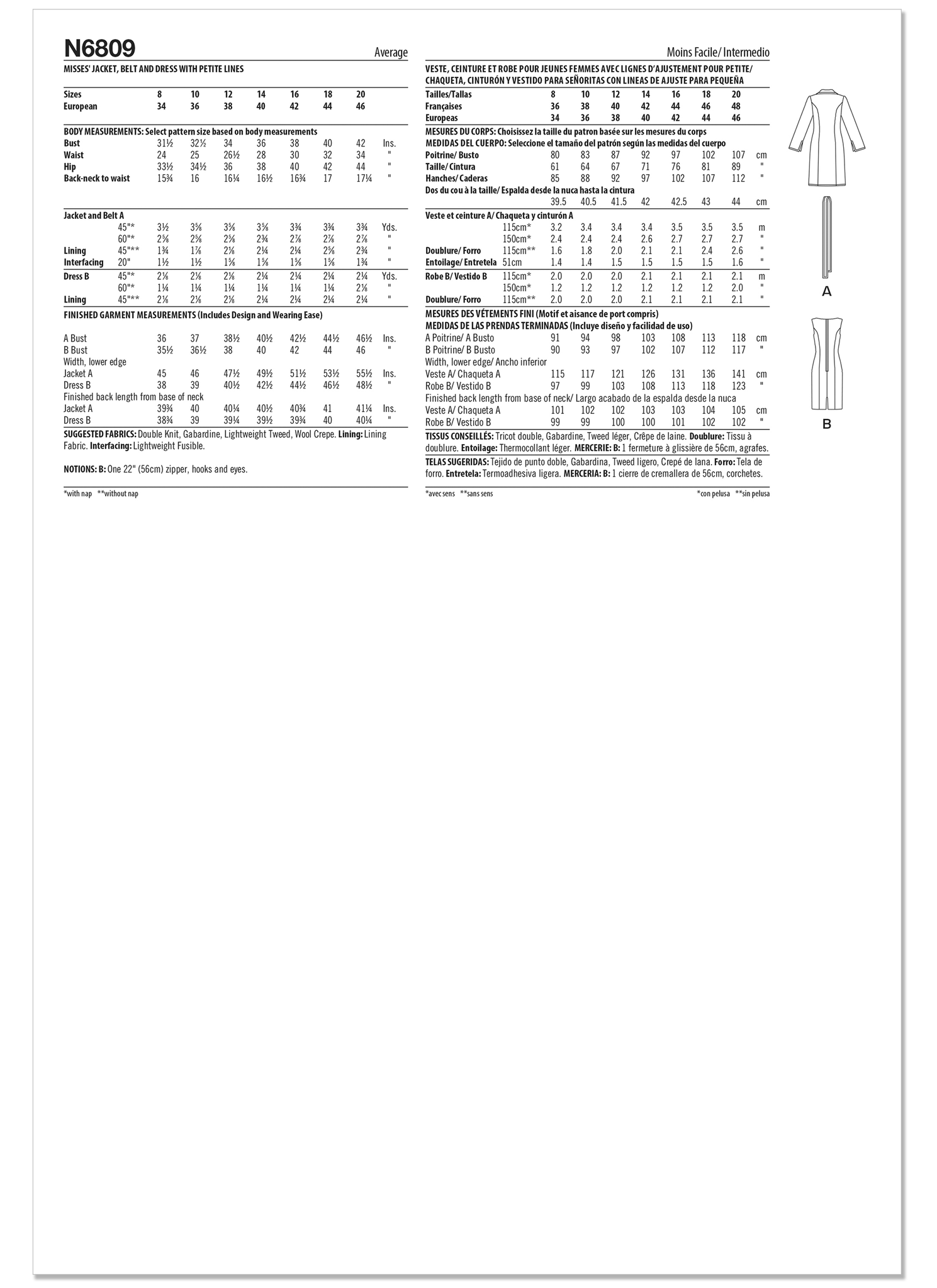 New Look Sewing Pattern N6809 Misses’ Jacket, Belt and Dress with Petite Lines.