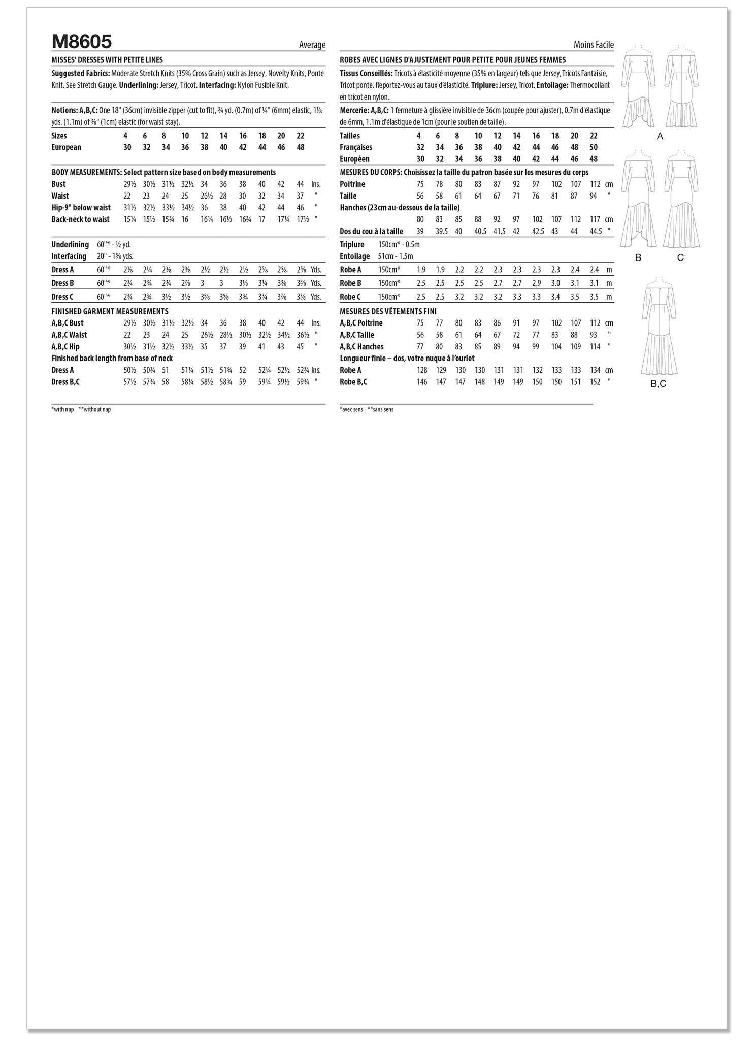 McCall’s Sewing Pattern M8605 Misses’ Dresses with Petite Lines.