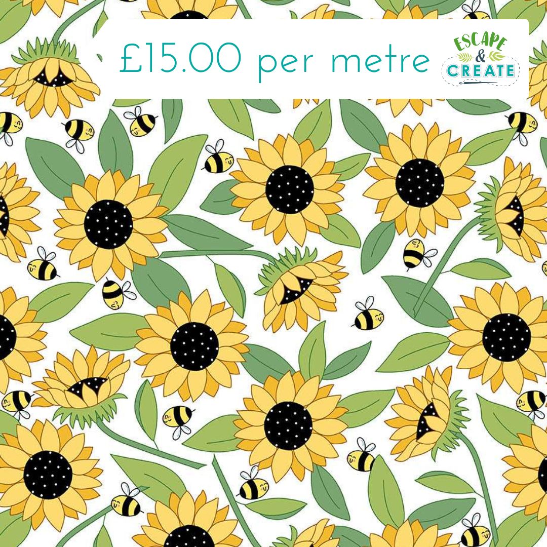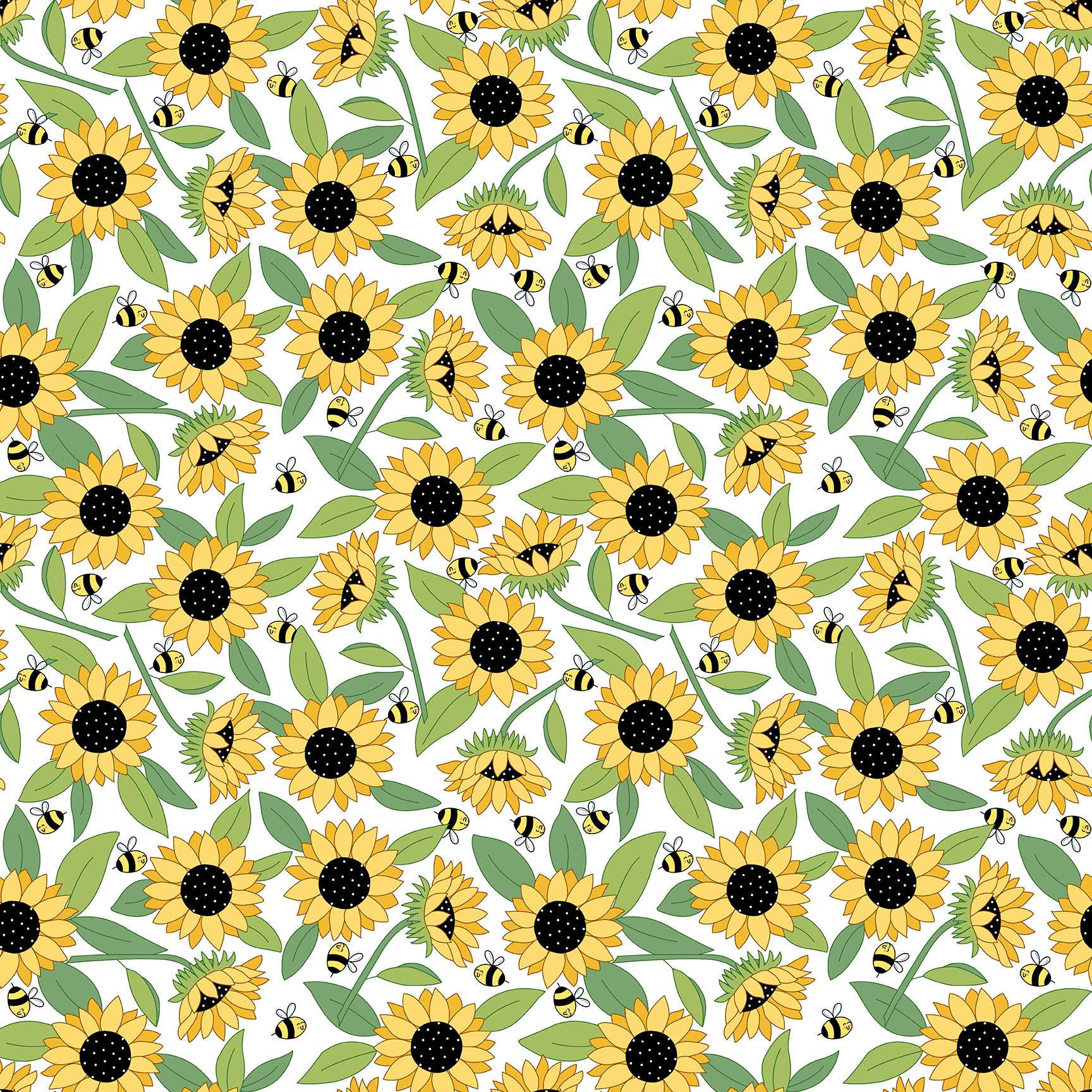 Bees and sunflowers make the perfect pair, so get ready to create with Sunny Honey, the second collection from Andover’s newest designer, Amy Latta. Bright, cheerful sunflower blooms are paired with adorable bees in flight, drawn in Amy’s whimsical style. Amy’s signature brush script lettering is featured as well, with handwritten messages like, “bee positive,” “bee kind,” and “spread a little sunshine” in three different colorways. The color palette includes not only black, white, and yellow, but also green and blue, so you can create colorful, cheerful projects of all kinds.