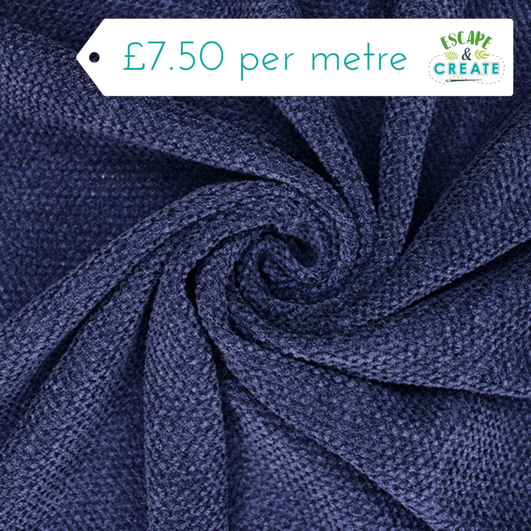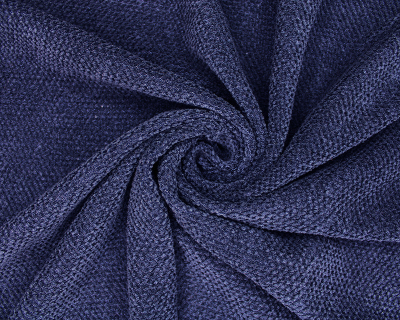 Chenille yarn and fabric are common in fashion and home décor. The material is soft, textured and fluffy and comes in a dark navy.