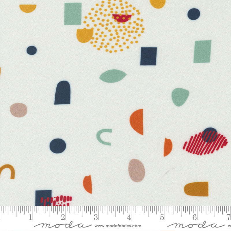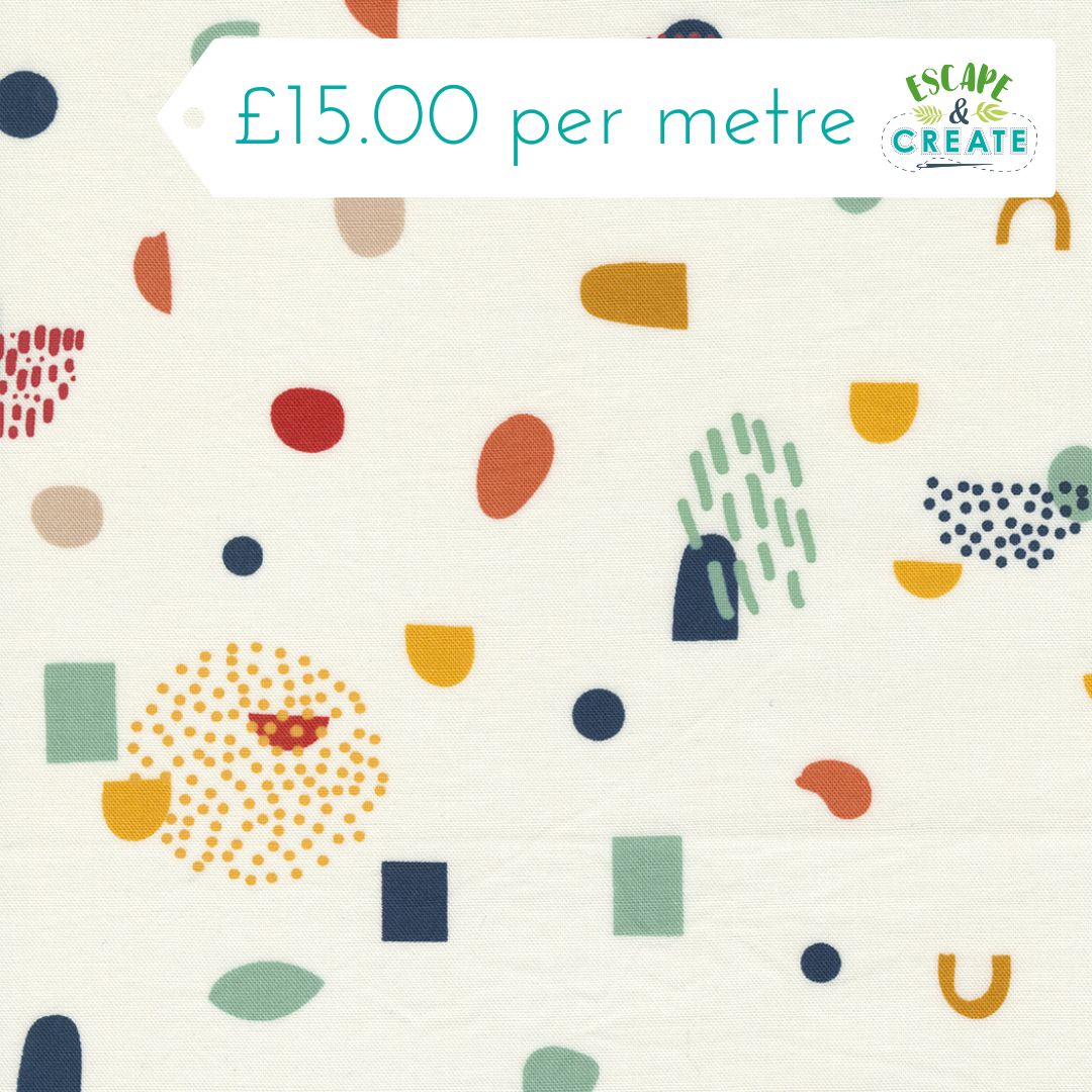 Catch Me has a playful feel with all the colors seemingly thrown onto the pale pink background. Dots on a grid, a couple of two-color prints, and an random, irregular dot print complete the collection.