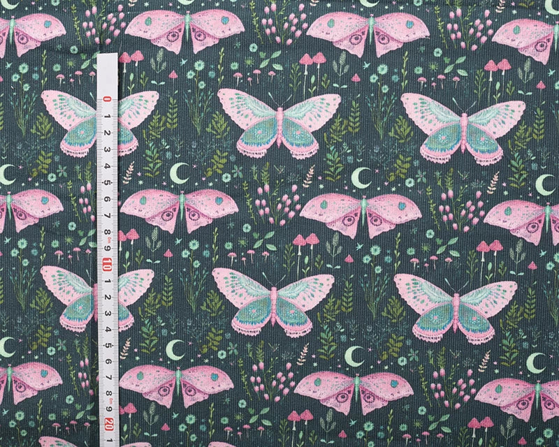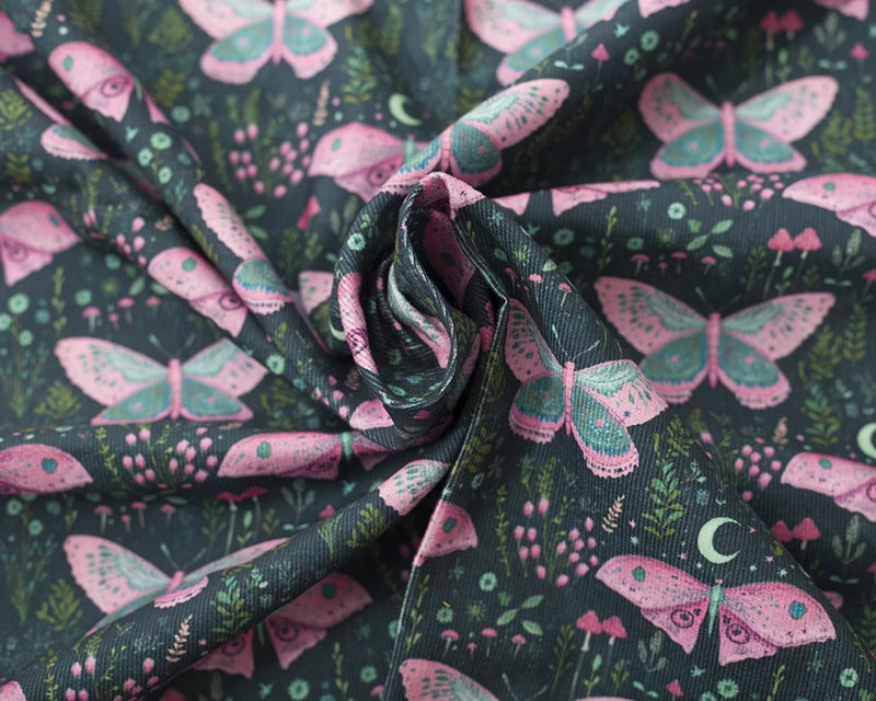 Needlecord (100% Cotton) Butterflies on Dark Green by Little Johnny