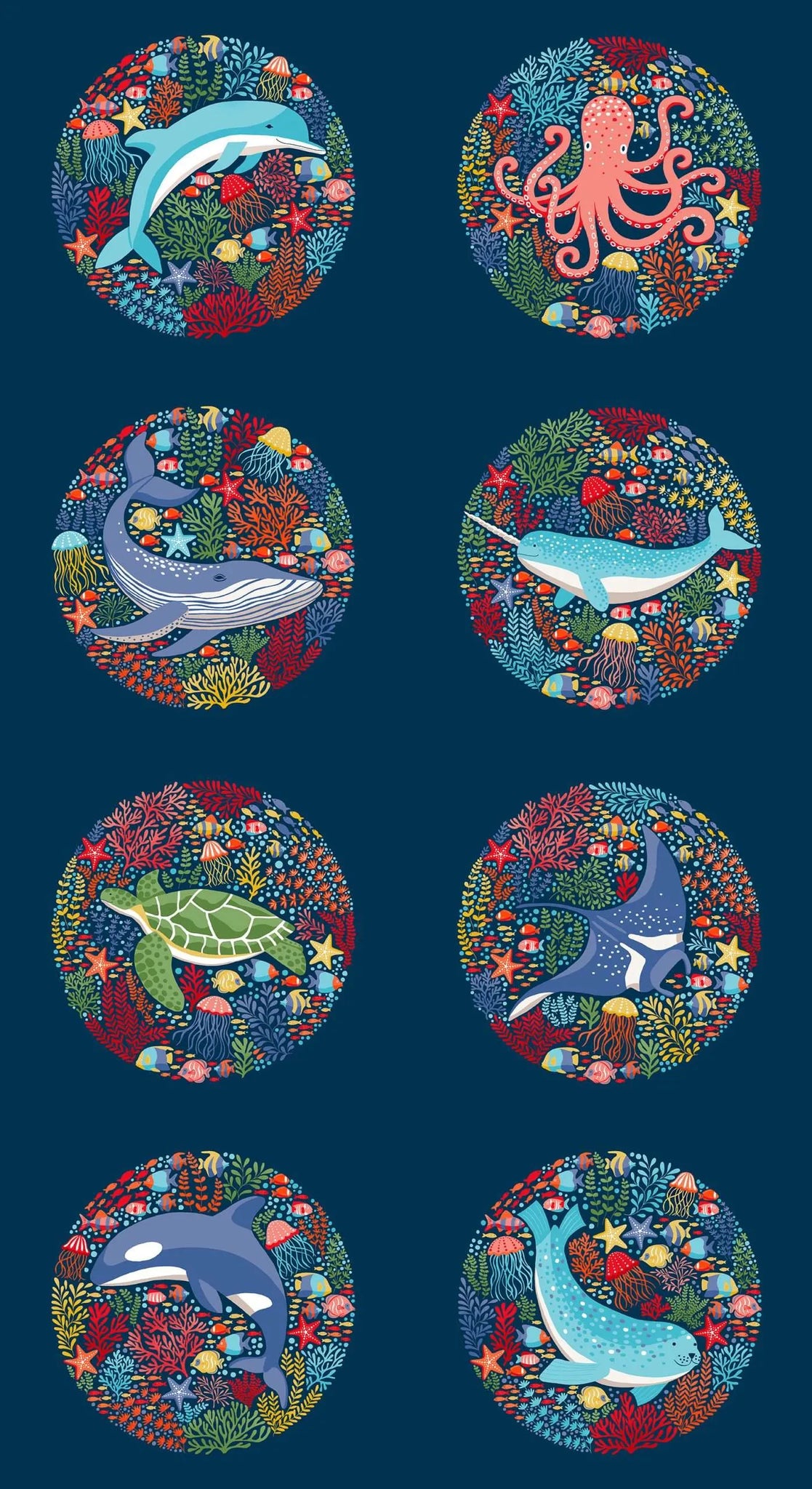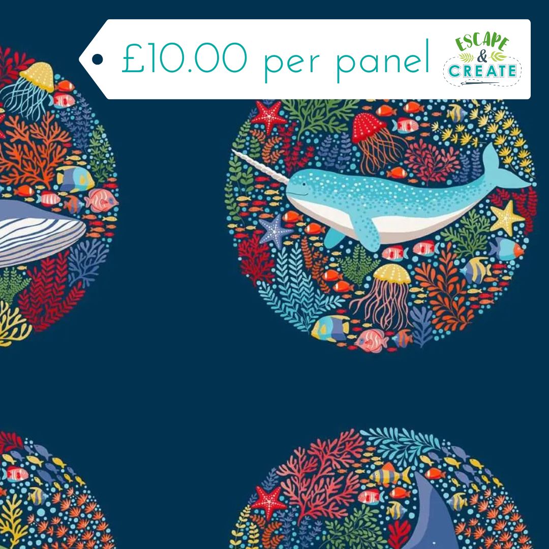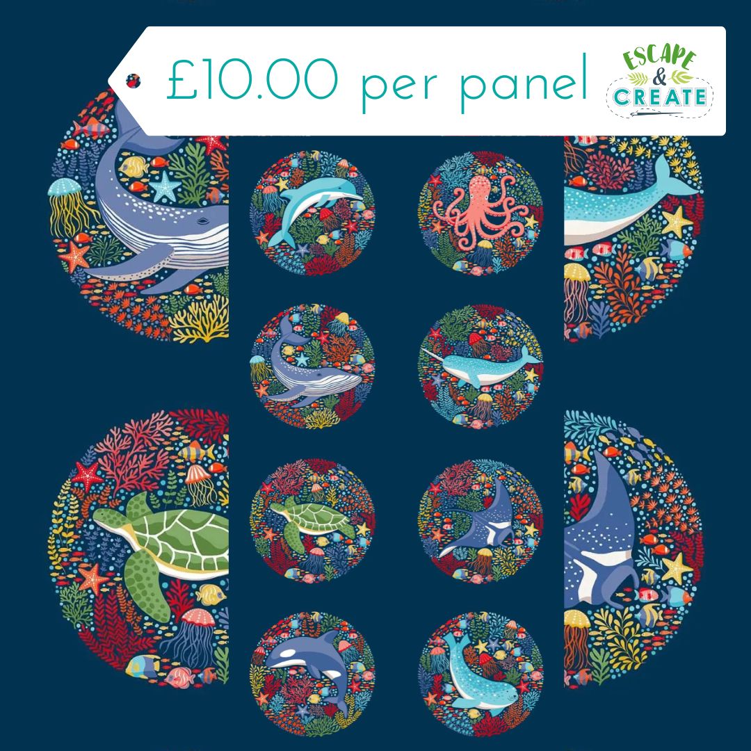 Dive into the Deep Blue Sea and swim alongside magical marine life in this underwater adventure. The collection features two 9-inch circle panels and showcases a vivid blue colour palette that captures the beauty of the ocean.