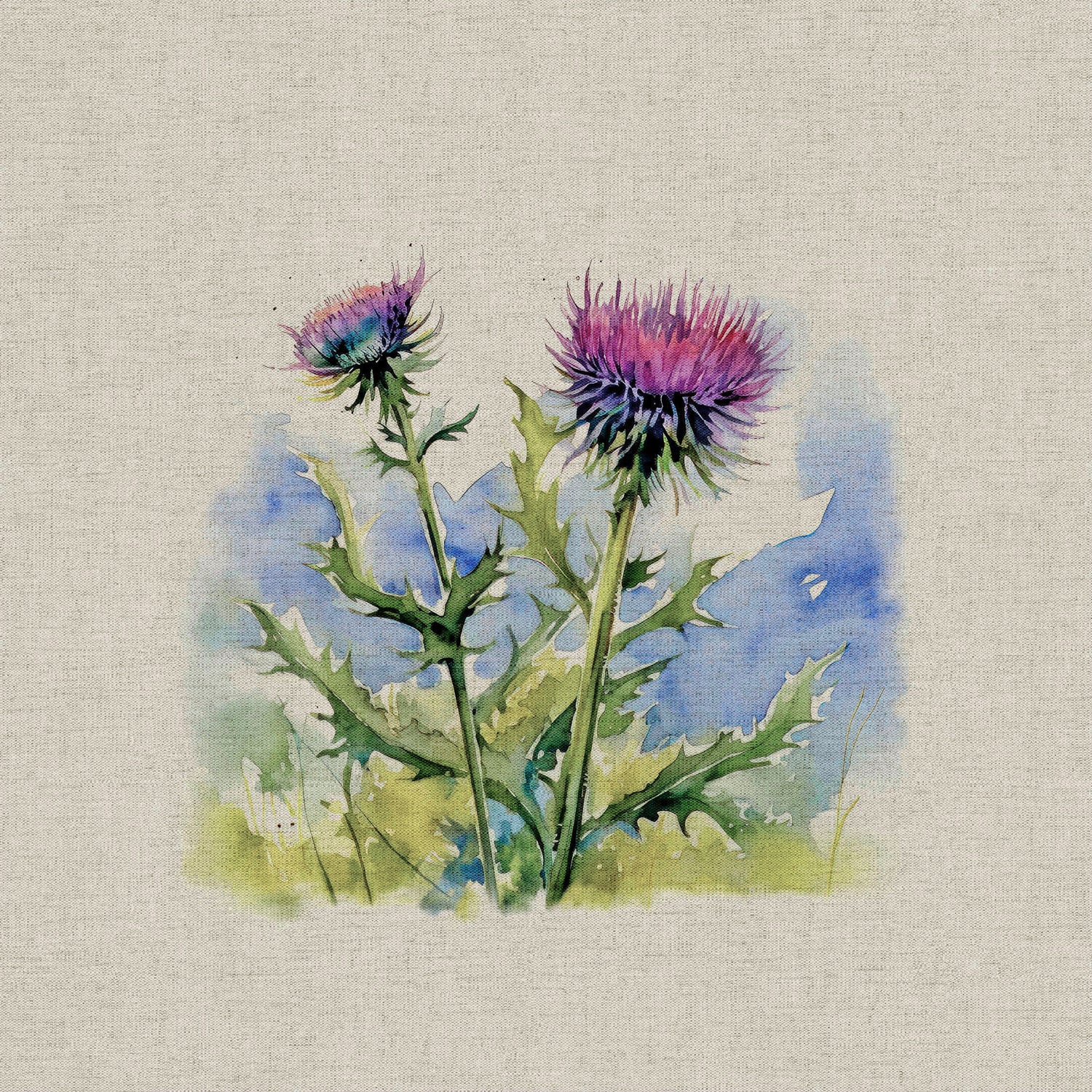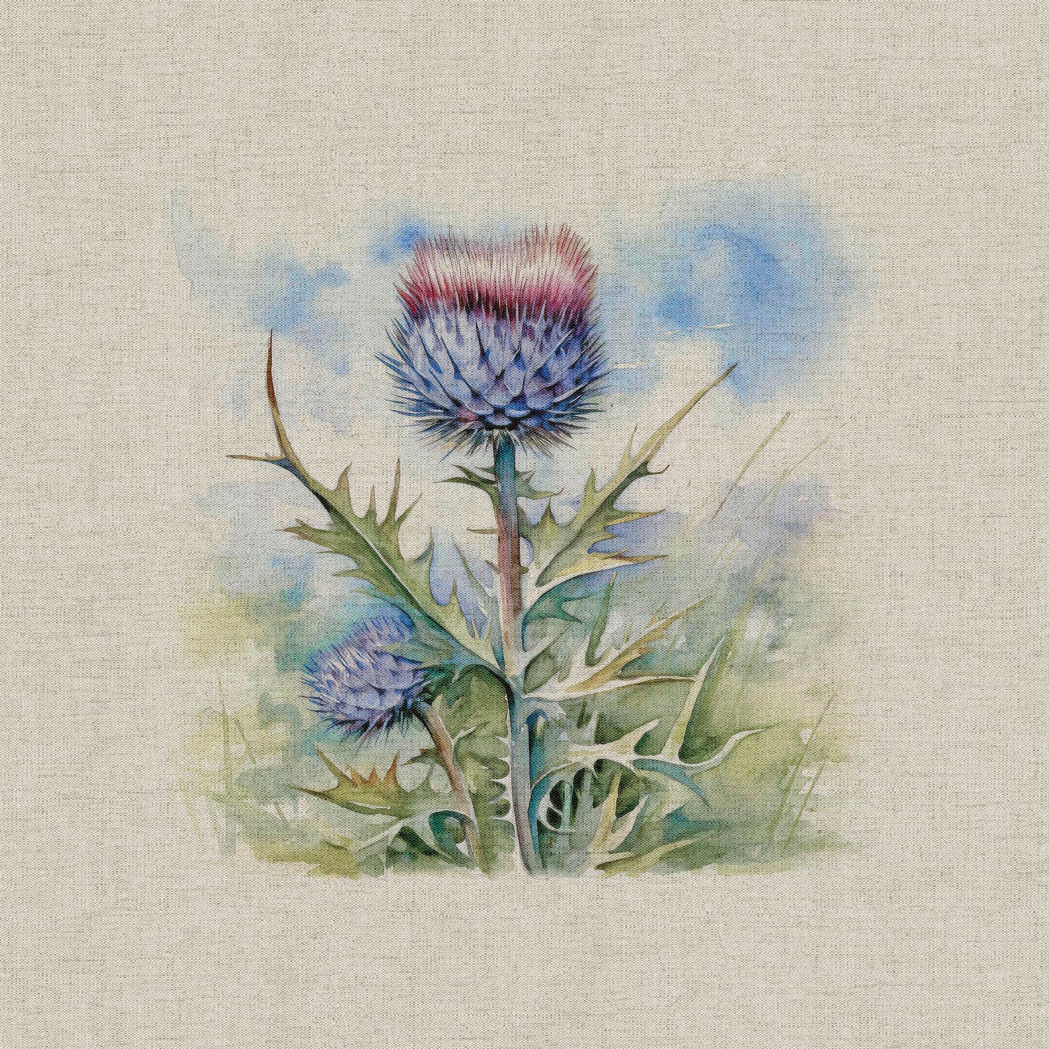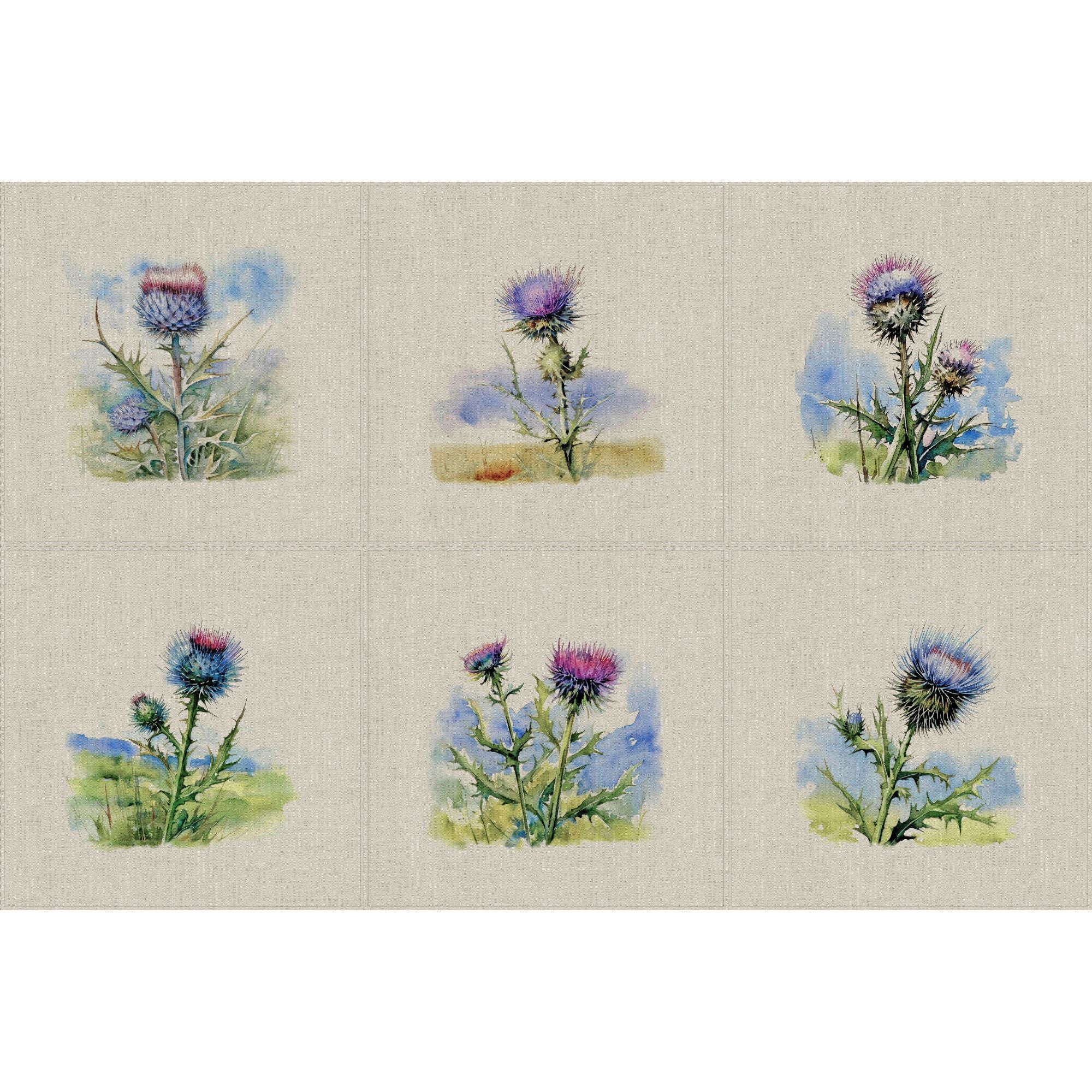 Panel (Linen Look Cotton Rich) Purple Thistles (66)