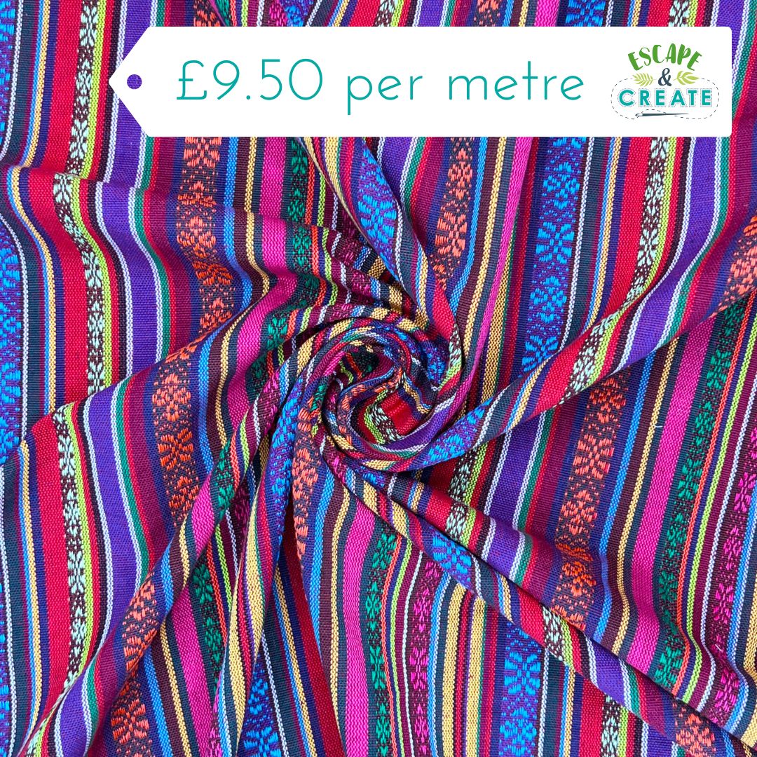 These amazing eye-catching multicoloured jacquard designs will make any creation stand out from the crowd! Made from eco-friendly recycled fibres they are also more sustainable and kinder to the environment. Perfect for jackets, coats, skirts, bags, cushions and crafts.
