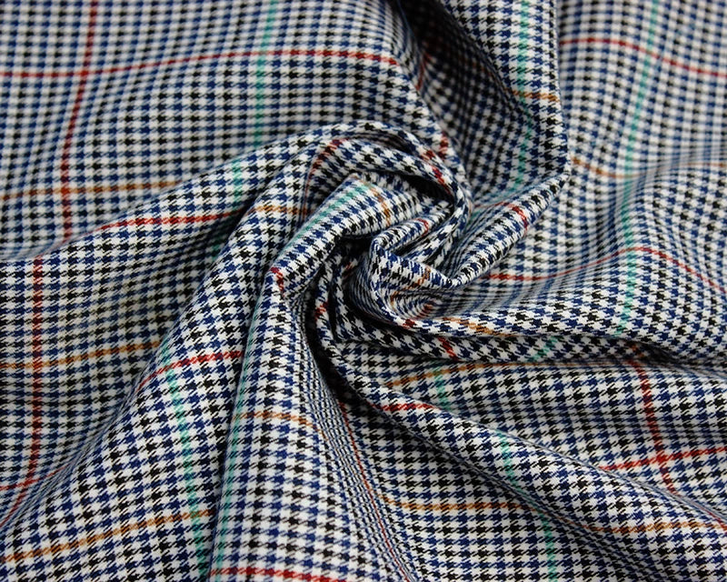 Wool is naturally soft as well as odor, dirt and water resistant. This, combined with the durability of polyester makes it a great, long-lasting fabric. This one is mid weight and would work in trousers or jackets.