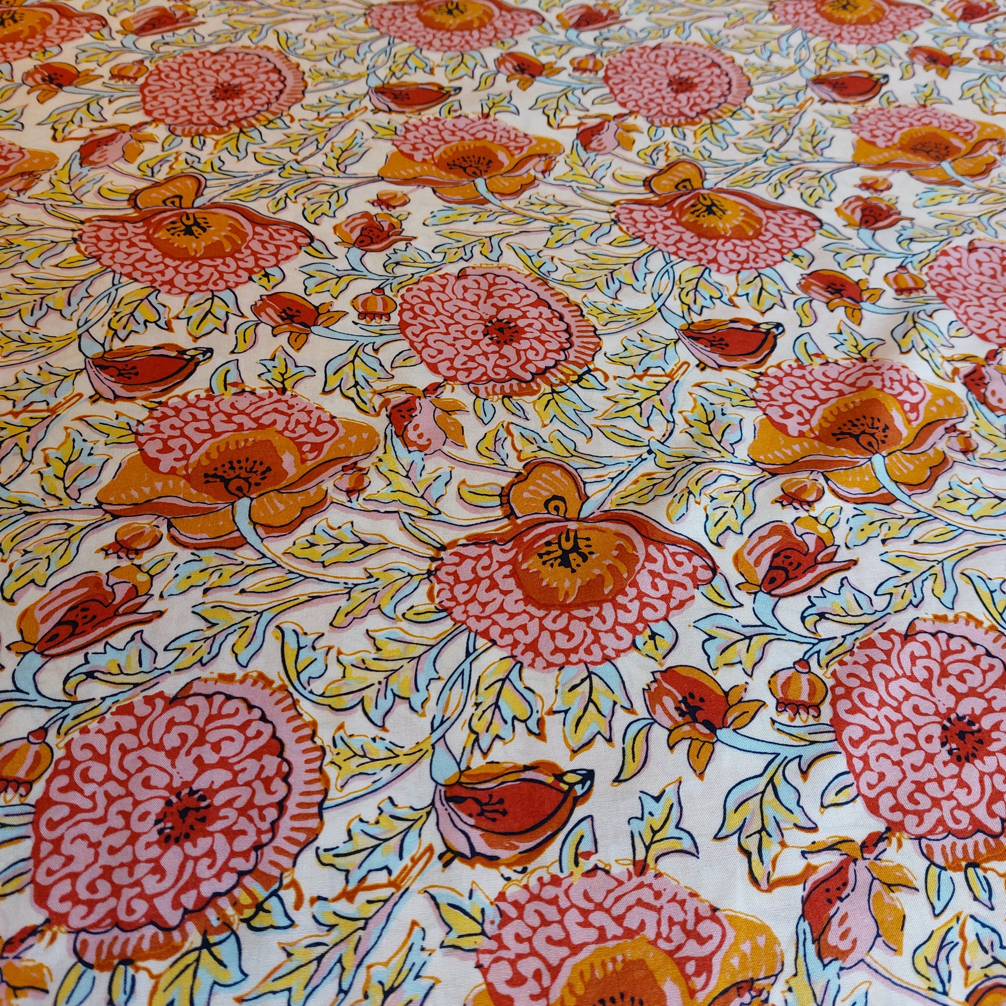 Tencel Large Summer Floral in Oranges/Pinks on Ivory