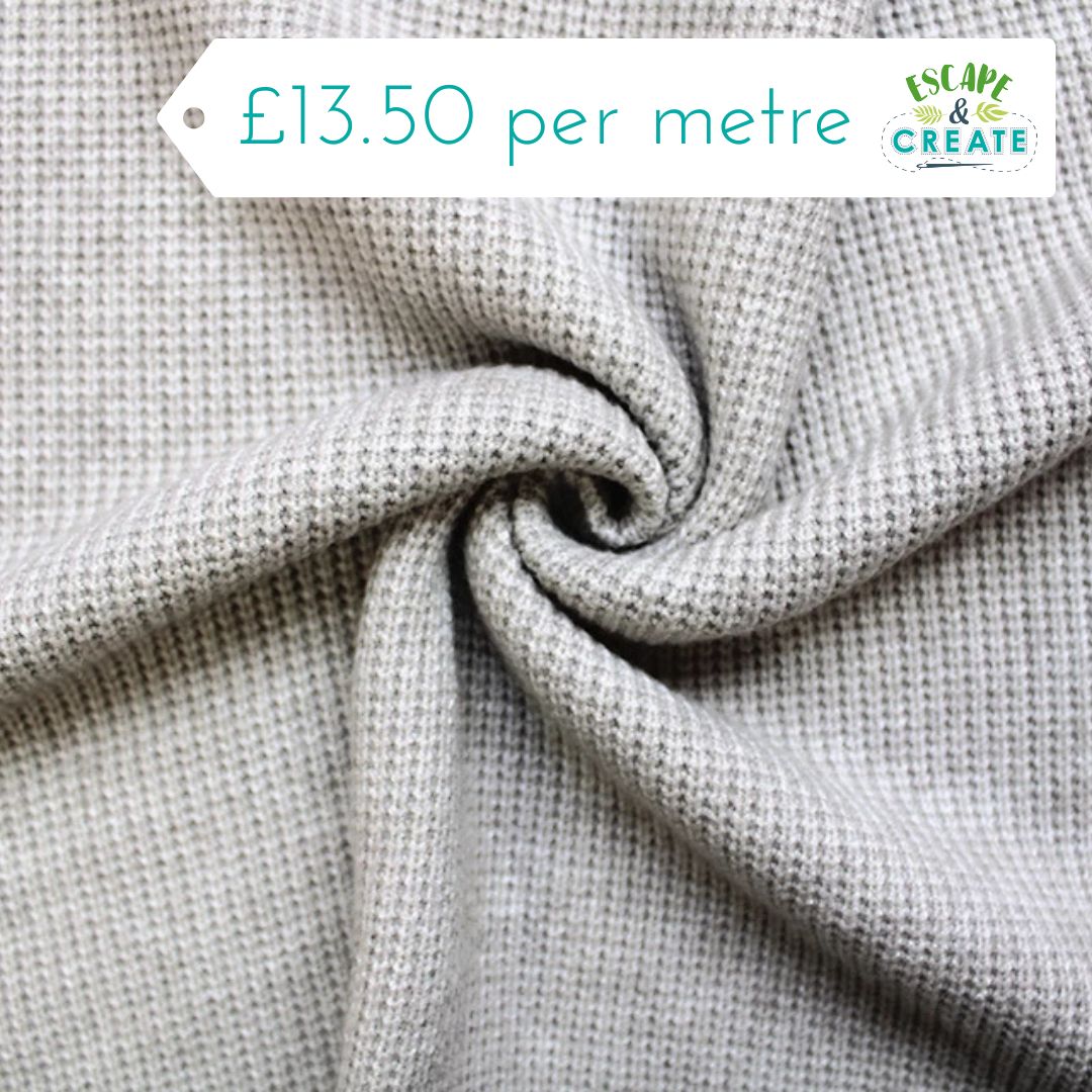This textured fabric has a unique waffle-like grid pattern and ribbed texture. The waffle weave allows for breathability while maintaining warmth, making it ideal for sweaters, cardigans, loungewear, and blankets. It's wonderfully soft so whatever you make with it you won't want to take it off!