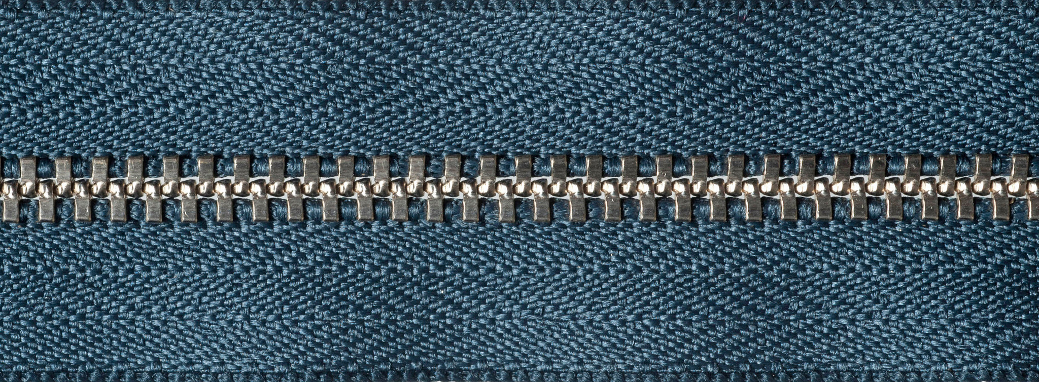 Strong metal tooth zip with auto-lock slider and heavy metal teeth.
