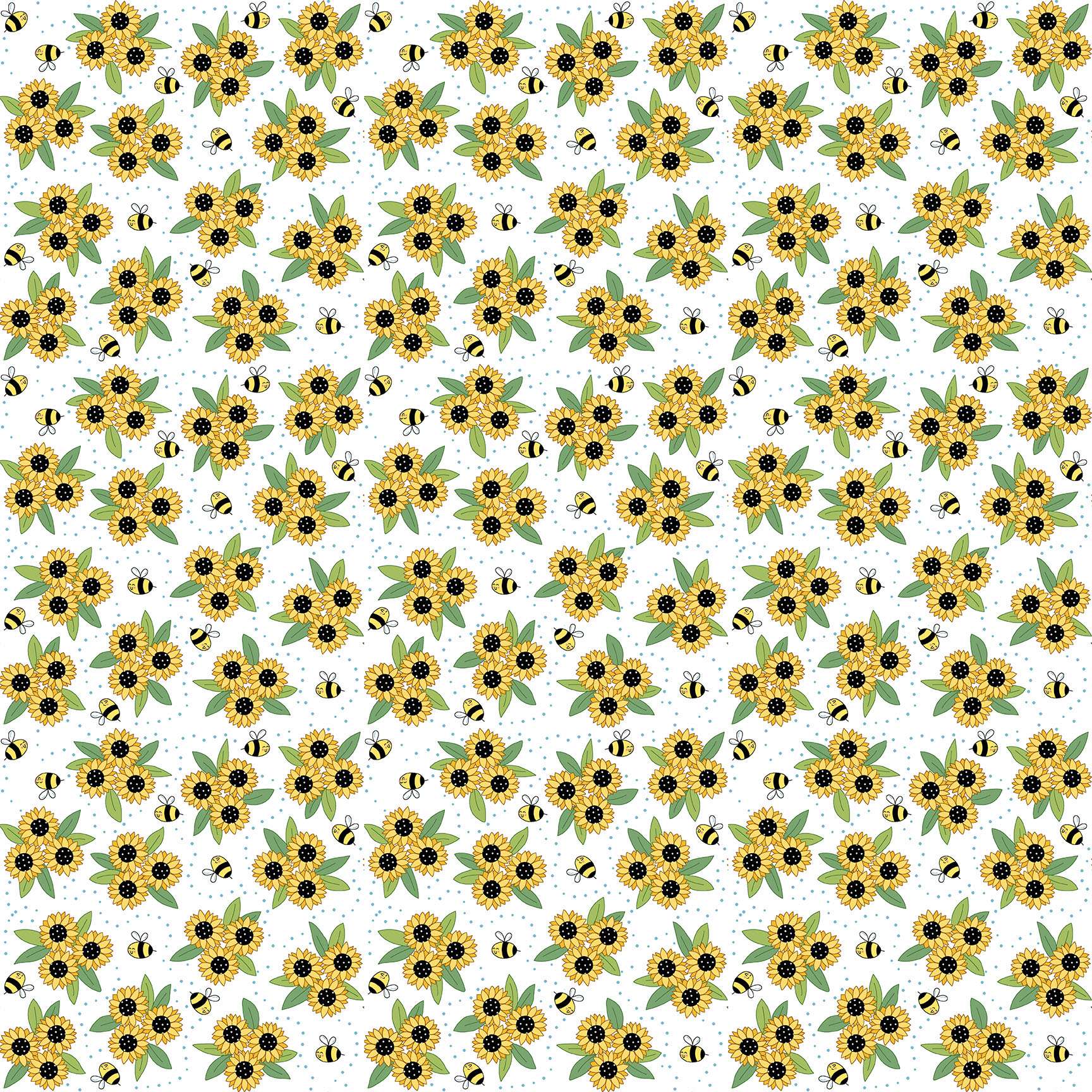 Bees and sunflowers make the perfect pair, so get ready to create with Sunny Honey, the second collection from Andover’s newest designer, Amy Latta. Bright, cheerful sunflower blooms are paired with adorable bees in flight, drawn in Amy’s whimsical style. Amy’s signature brush script lettering is featured as well, with handwritten messages like, “bee positive,” “bee kind,” and “spread a little sunshine” in three different colorways. The color palette includes not only black, white, and yellow, but also green and blue, so you can create colorful, cheerful projects of all kinds.