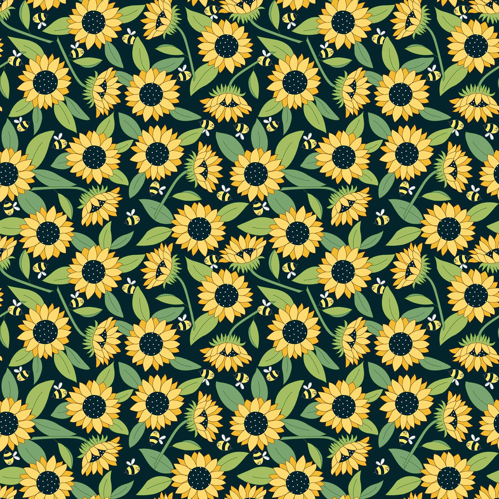 Bees and sunflowers make the perfect pair, so get ready to create with Sunny Honey, the second collection from Andover’s newest designer, Amy Latta. Bright, cheerful sunflower blooms are paired with adorable bees in flight, drawn in Amy’s whimsical style. Amy’s signature brush script lettering is featured as well, with handwritten messages like, “bee positive,” “bee kind,” and “spread a little sunshine” in three different colorways. The color palette includes not only black, white, and yellow, but also green and blue, so you can create colorful, cheerful projects of all kinds.