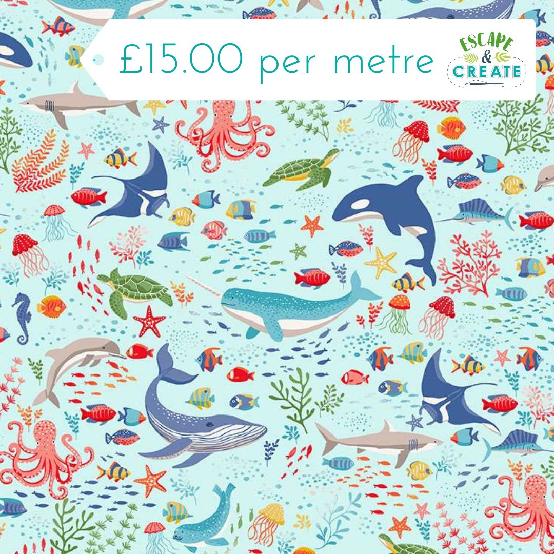 Makower Deep Blue Sea Creatures Light Blue