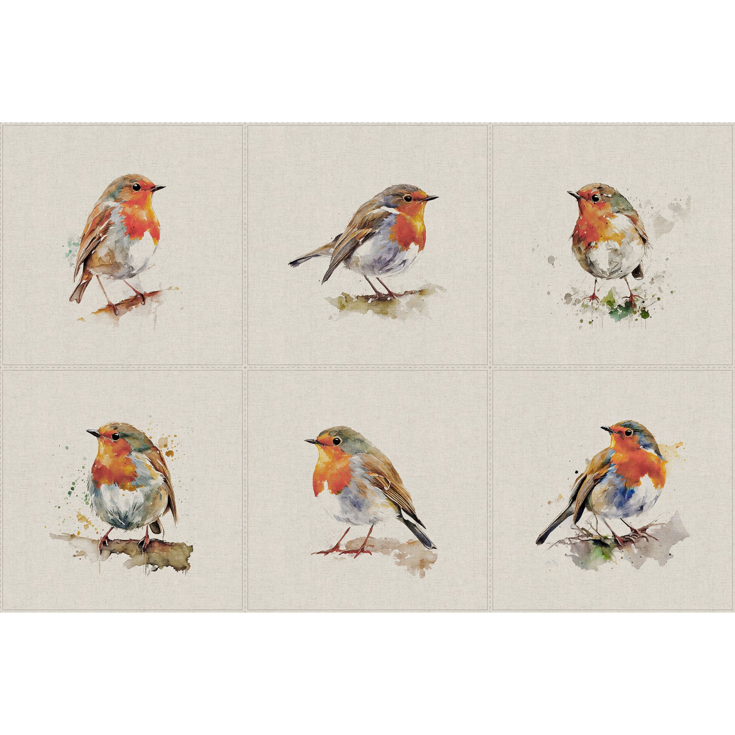 Panel (Linen Look Cotton Rich) Watercolour Cheeky Robins (68)
