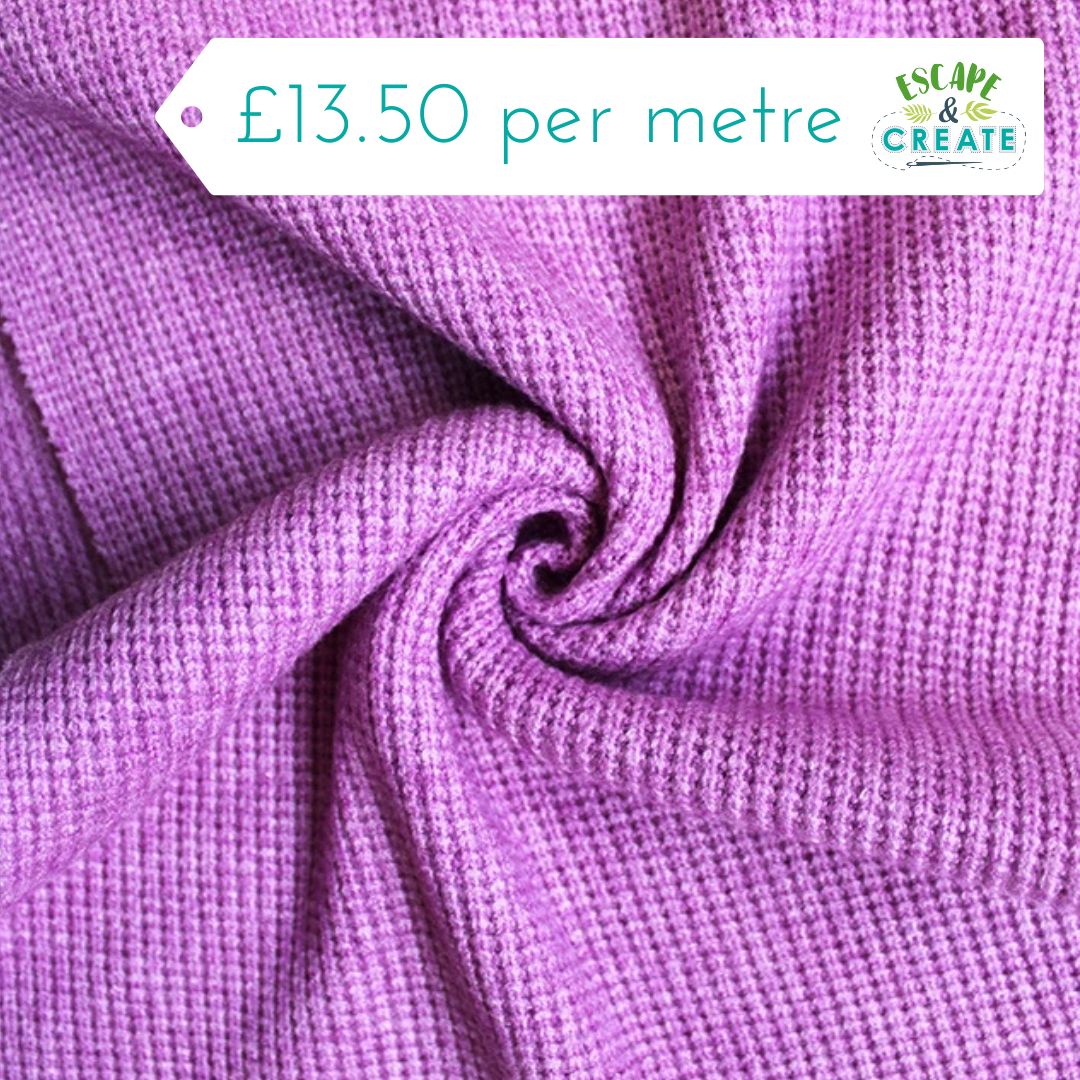 This textured fabric has a unique waffle-like grid pattern and ribbed texture. The waffle weave allows for breathability while maintaining warmth, making it ideal for sweaters, cardigans, loungewear, and blankets. It's wonderfully soft so whatever you make with it you won't want to take it off!