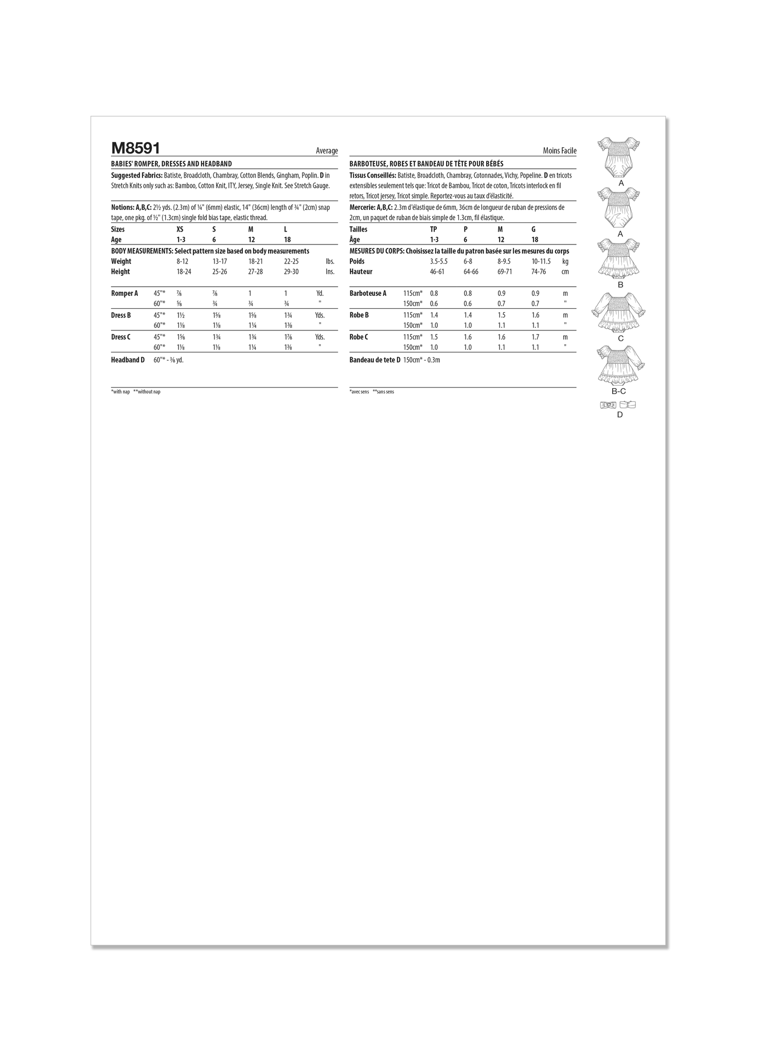 McCall’s Sewing Pattern M8591 Babies’ Romper, Dresses and Headband.