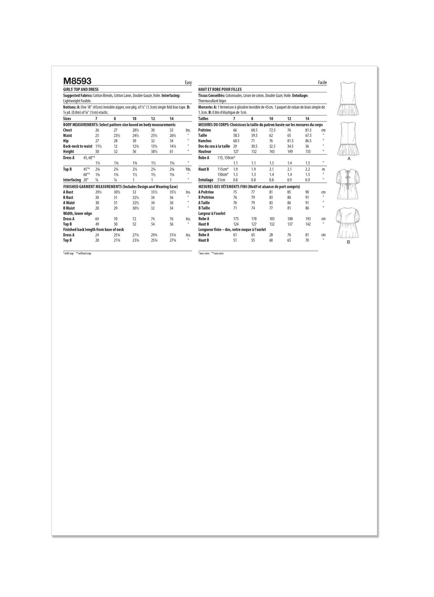 McCall’s Sewing Pattern M8593 Girls’ Dress and Top