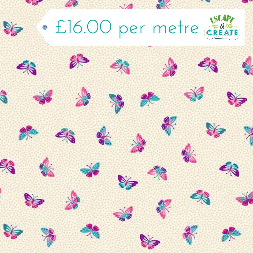 Makower Tropica Butterflies Cream