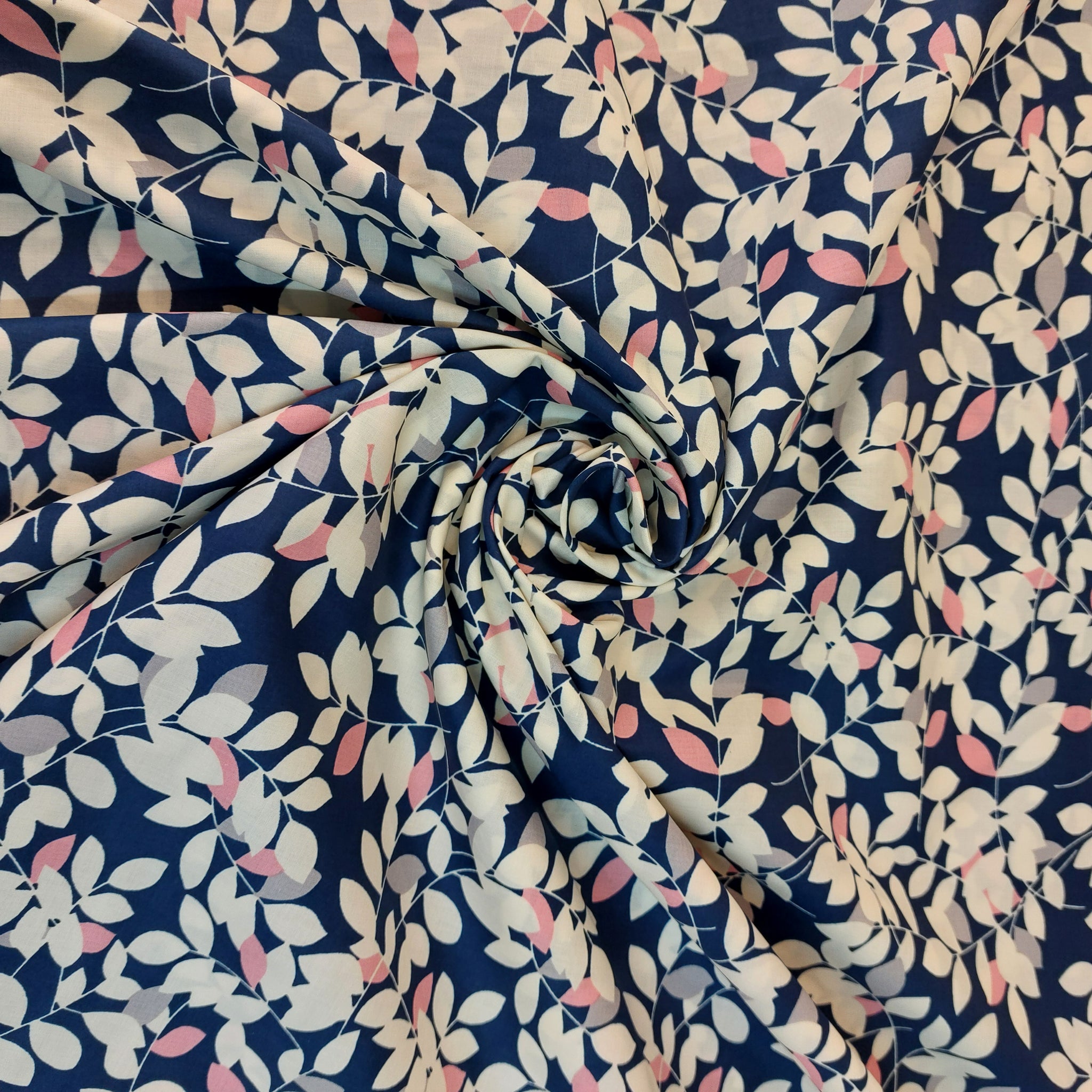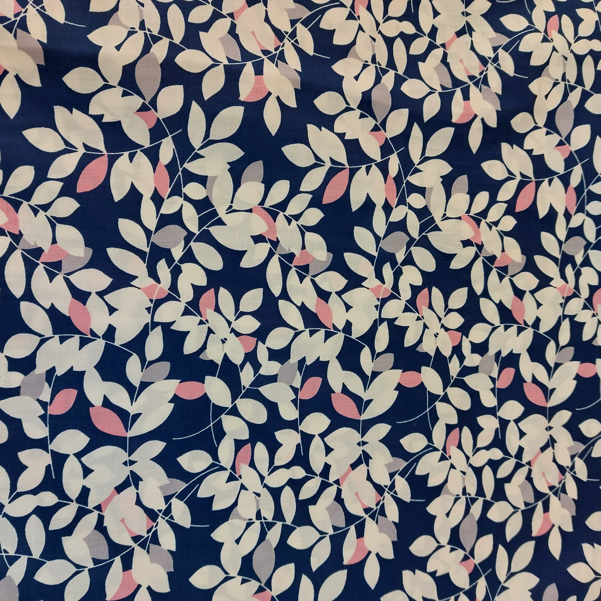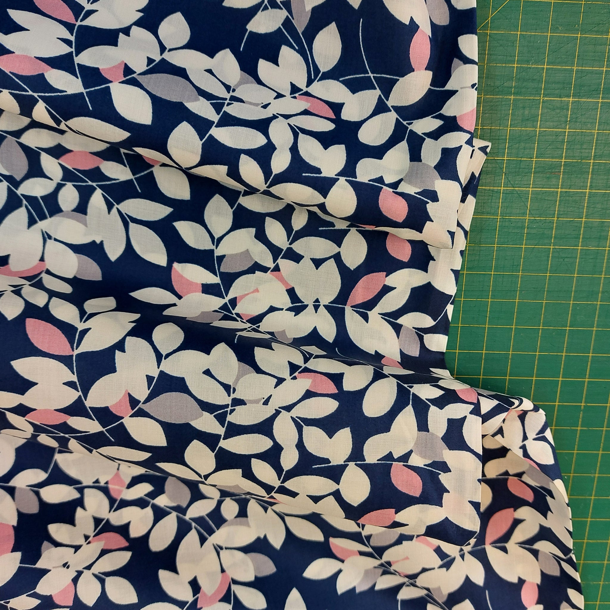 REMNANT Cotton Lawn (Pima) Candy Leaf on Navy (140cm wide x 130cm)