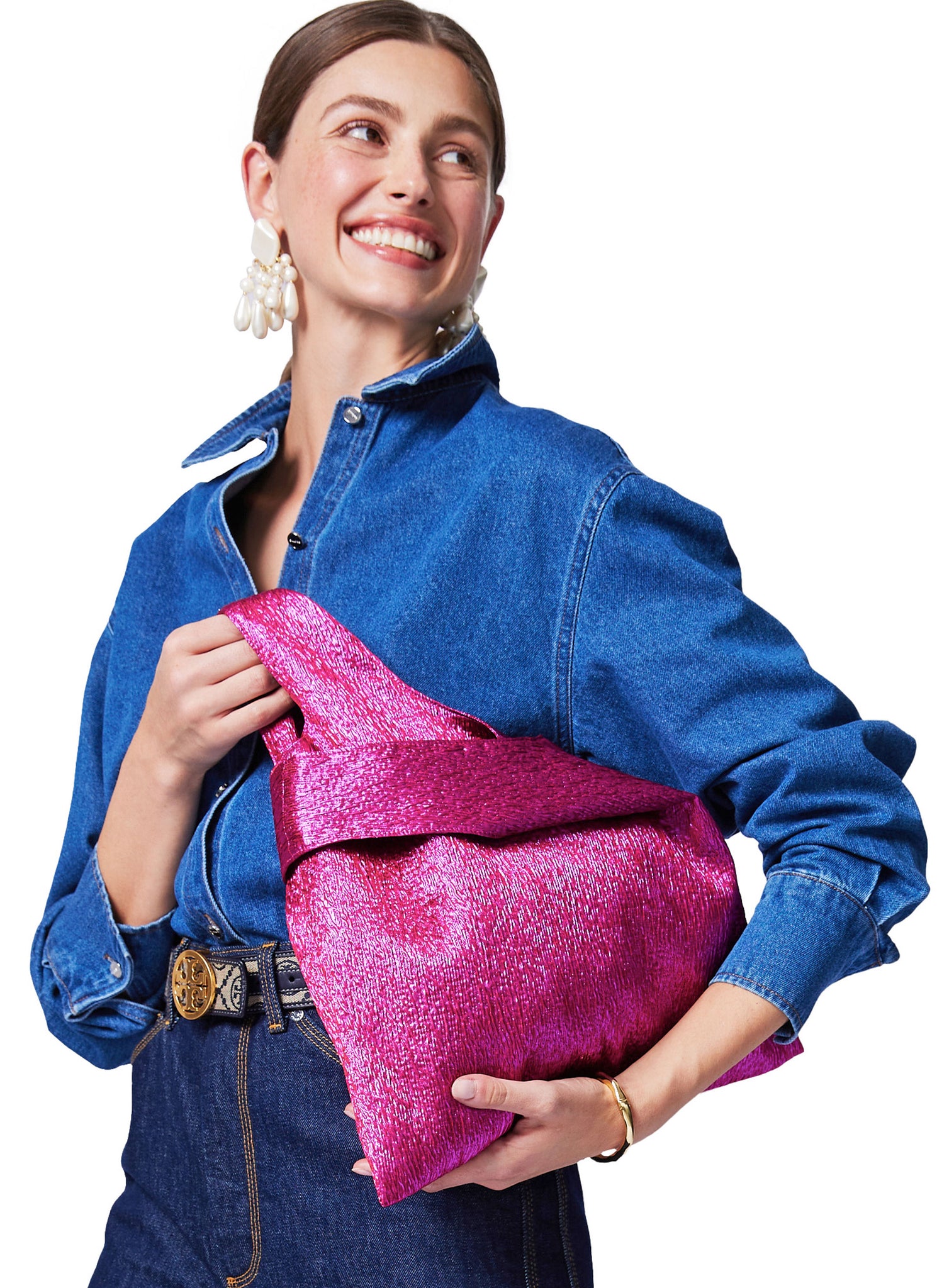 Discover our step-by-step tutorial for two mini bags with denim loop and gold chain belt – perfect for beginners! These handy mini bags can be worn on a belt or around the neck. For a simple look, thread them onto a simple leather belt. Add an elegant gold chain for a stylish shoulder bag – you can even choose the length of the chain!