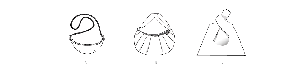 A: jacquard, B: denim, corduroy, C: lurex. ABC: Cotton fabrics as lining