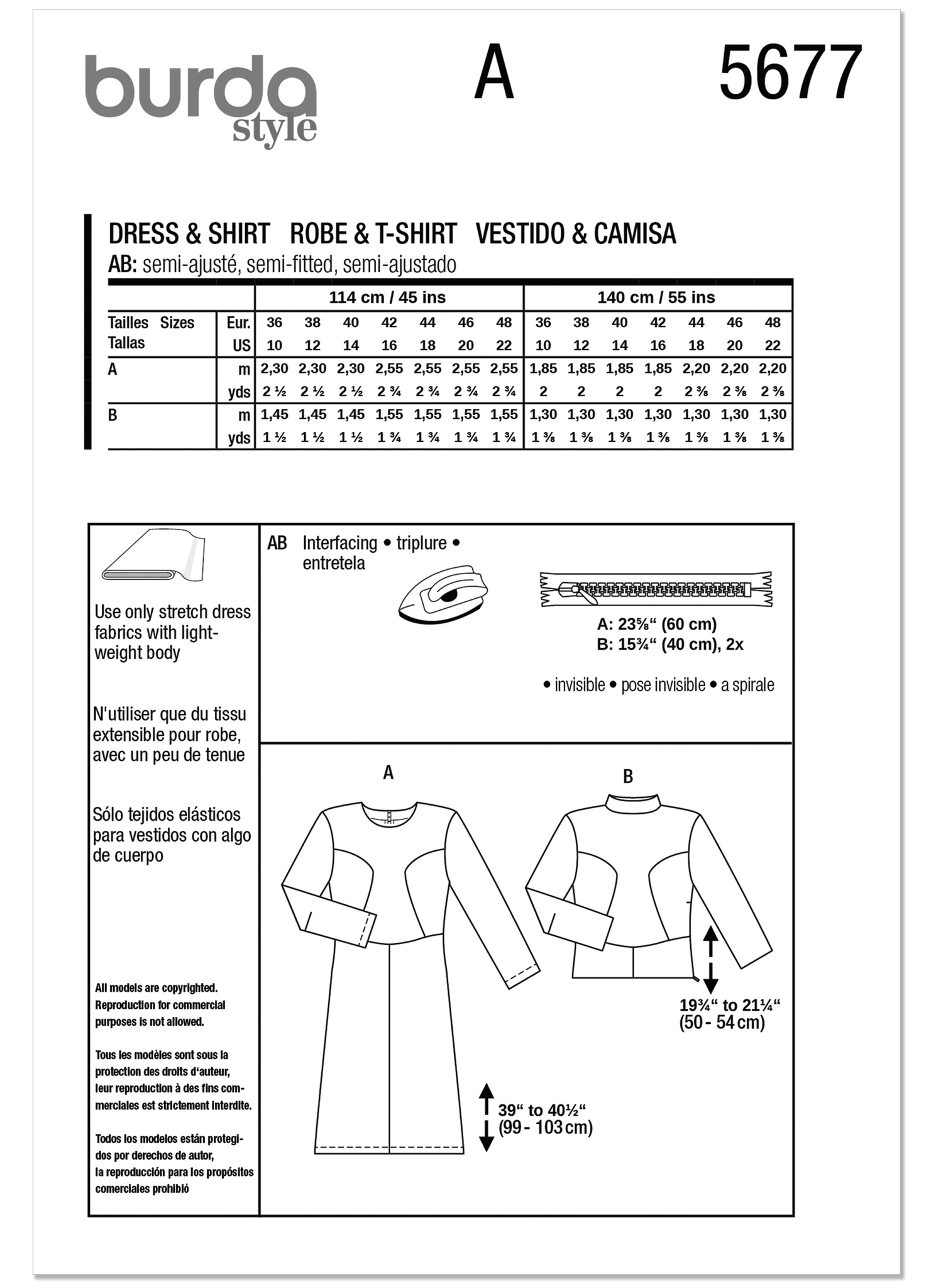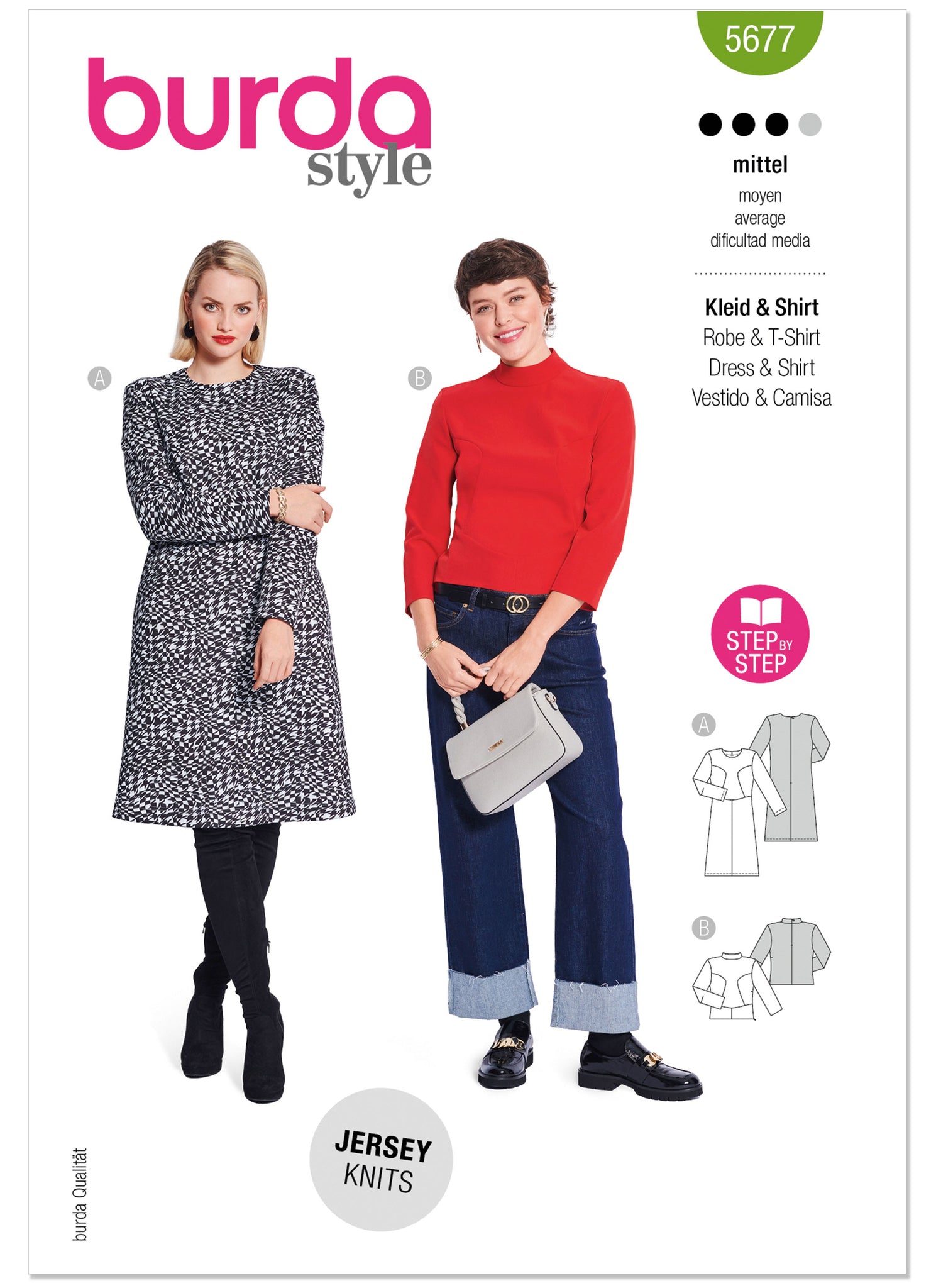 This dress and shirt offer two versatile patterns. The dress features flattering seams that highlight the figure, with a stretchy jersey fabric for ultimate comfort. The subtly flared skirt creates a chic Sixties silhouette. The shirt, with curved front seams, is elegant enough for the office but relaxed and comfortable for casual wear. Perfect for any occasion!