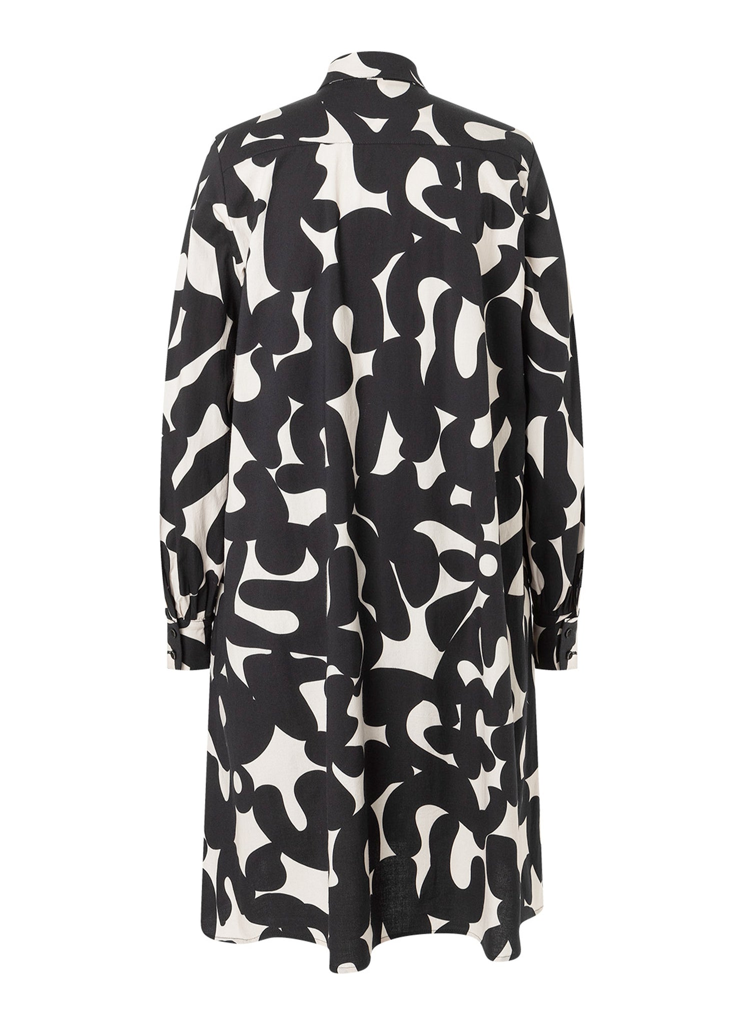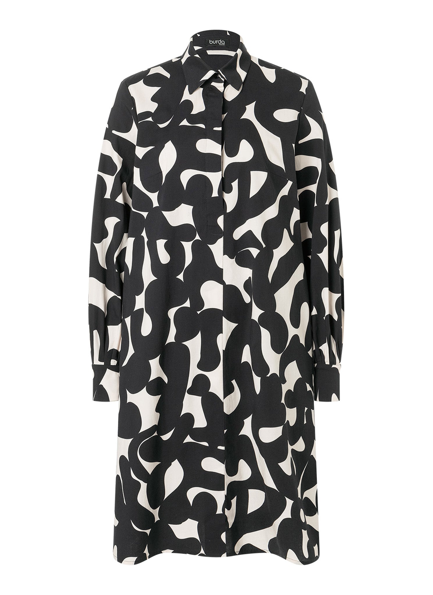 This dress and blouse pattern is perfect for experienced sewers. The first pattern is a mini dress with a relaxed, oversized fit, bold prints, and a hidden polo placket—modern and inspired by Twiggy’s iconic style. The second version features an elegant design made from Crêpe Marocaine, a heavy crepe with a subtle shine, creating a refined, sophisticated look. Ideal for creating standout outfits!