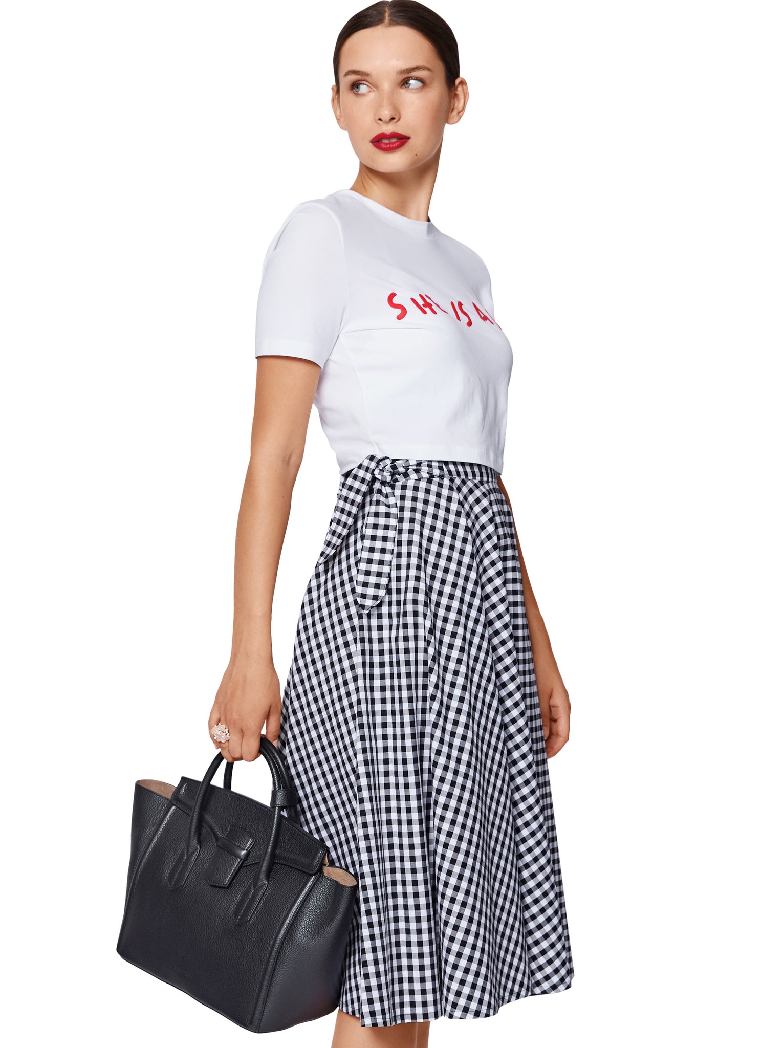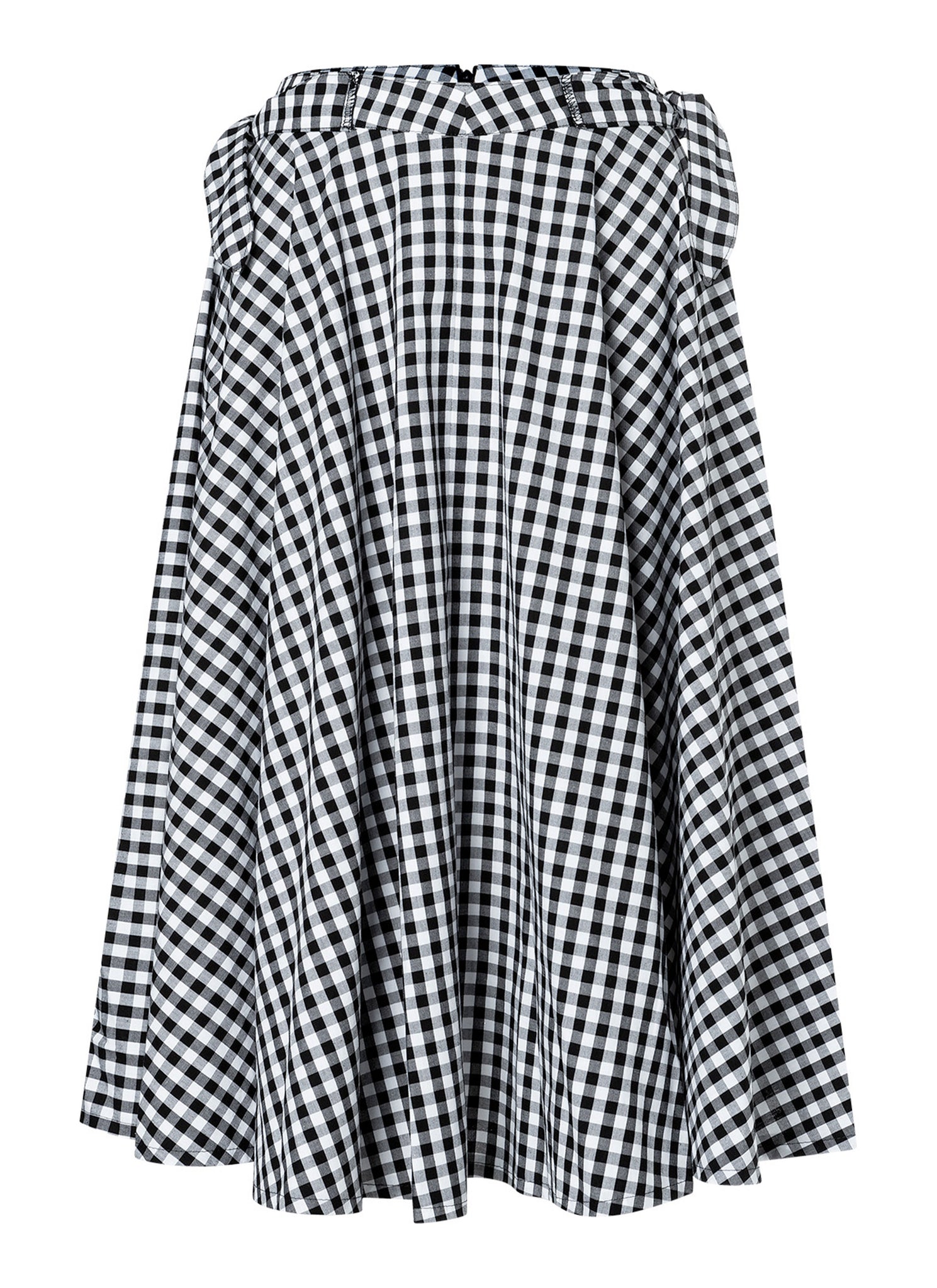 Discover the latest skirt patterns for sewing beginners! The first pattern features a flowing, swinging skirt. Perfect for dance lessons! The second combines French chic and rockabilly with a knee-length Vichy check skirt with bows at the waistband. The third creates an elegant silhouette with a long jacquard denim flared skirt, wide waistband and buttons – perfect for special occasions!