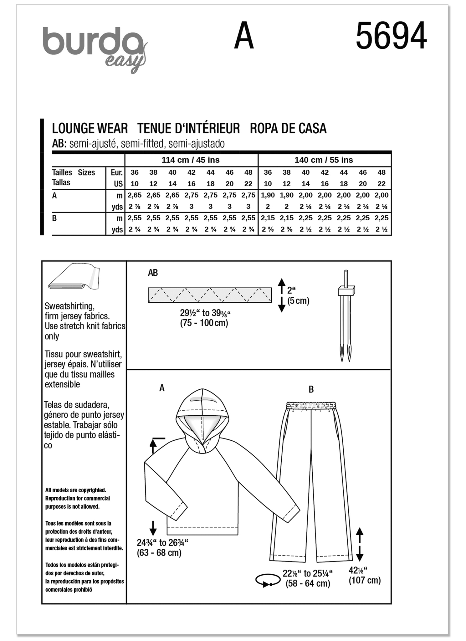 Whether for relaxing at home or out in the city, these patterns offer two fantastic options. The classic hoodie features a comfy hood and raglan sleeves, easy to sew and even easier to wear. The jogging trousers, with stylish forward-facing side seams and practical seam pockets, are the perfect all-rounder for any occasion. A perfect blend of comfort and style!