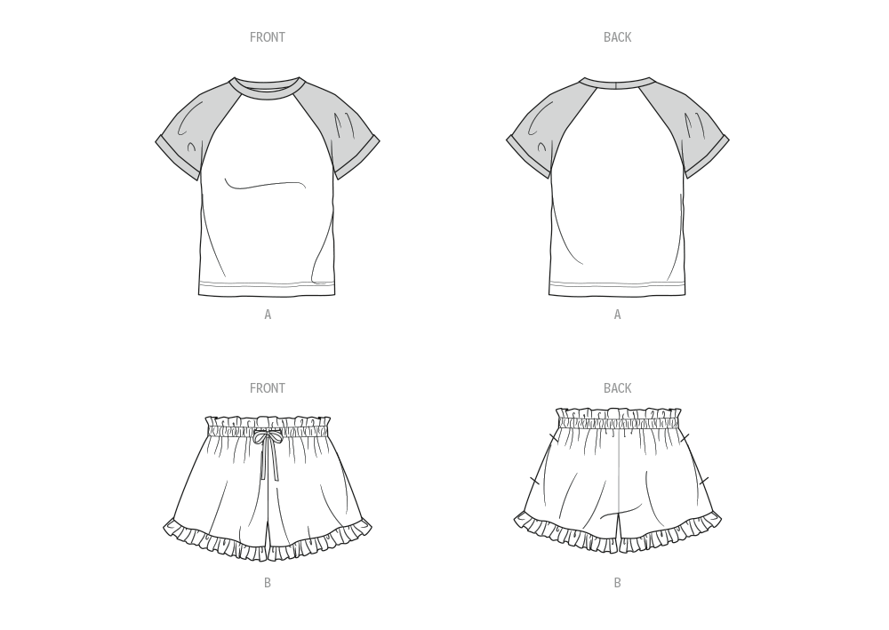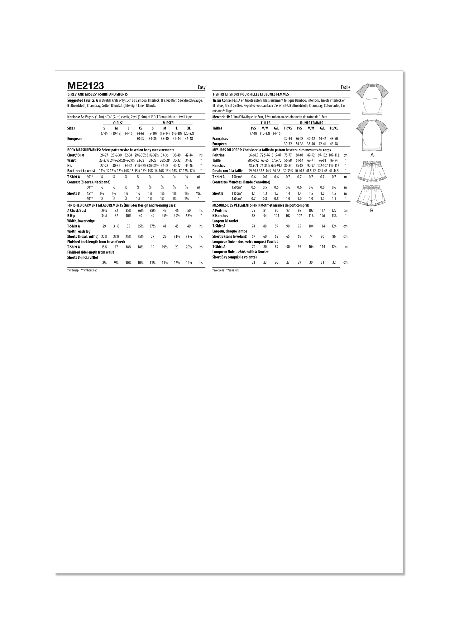 Know Me Sewing Pattern ME2123 Girls’ and Misses’ T-Shirt and Shorts by Holly Darling.