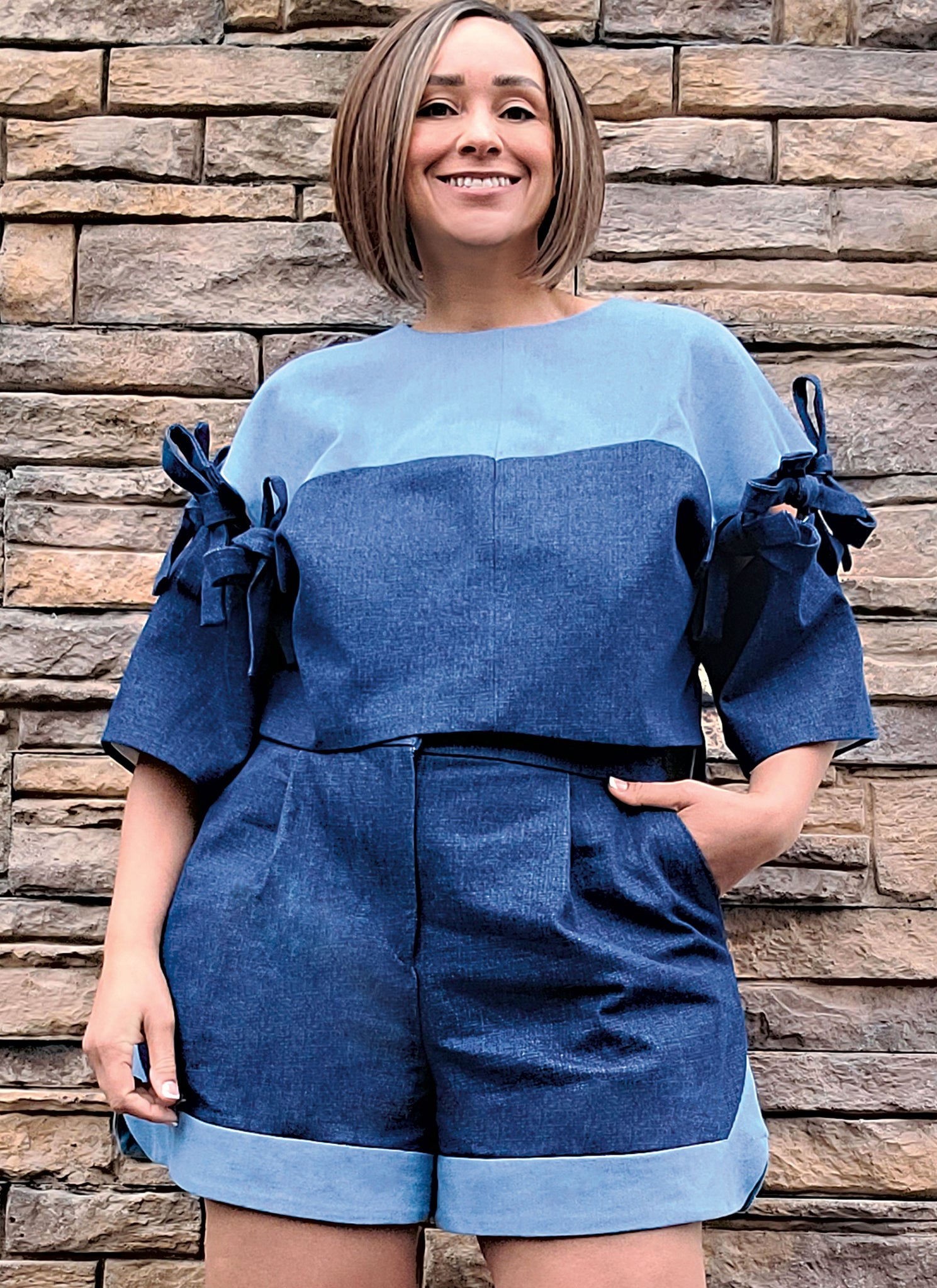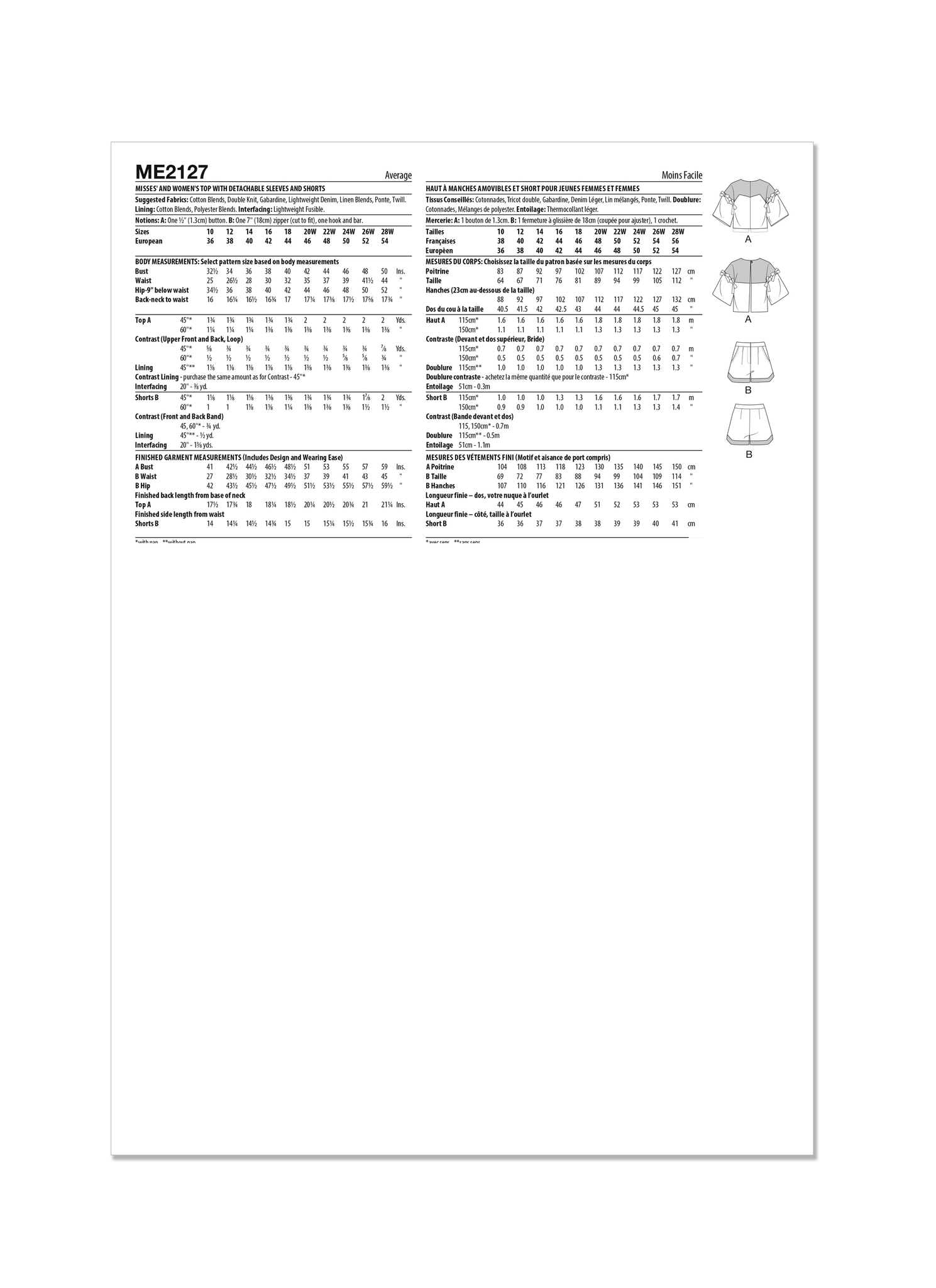 Know Me Sewing Pattern ME2127 Misses’ and Women’s Top with Detachable Sleeves and Shorts by Keechii B Style.