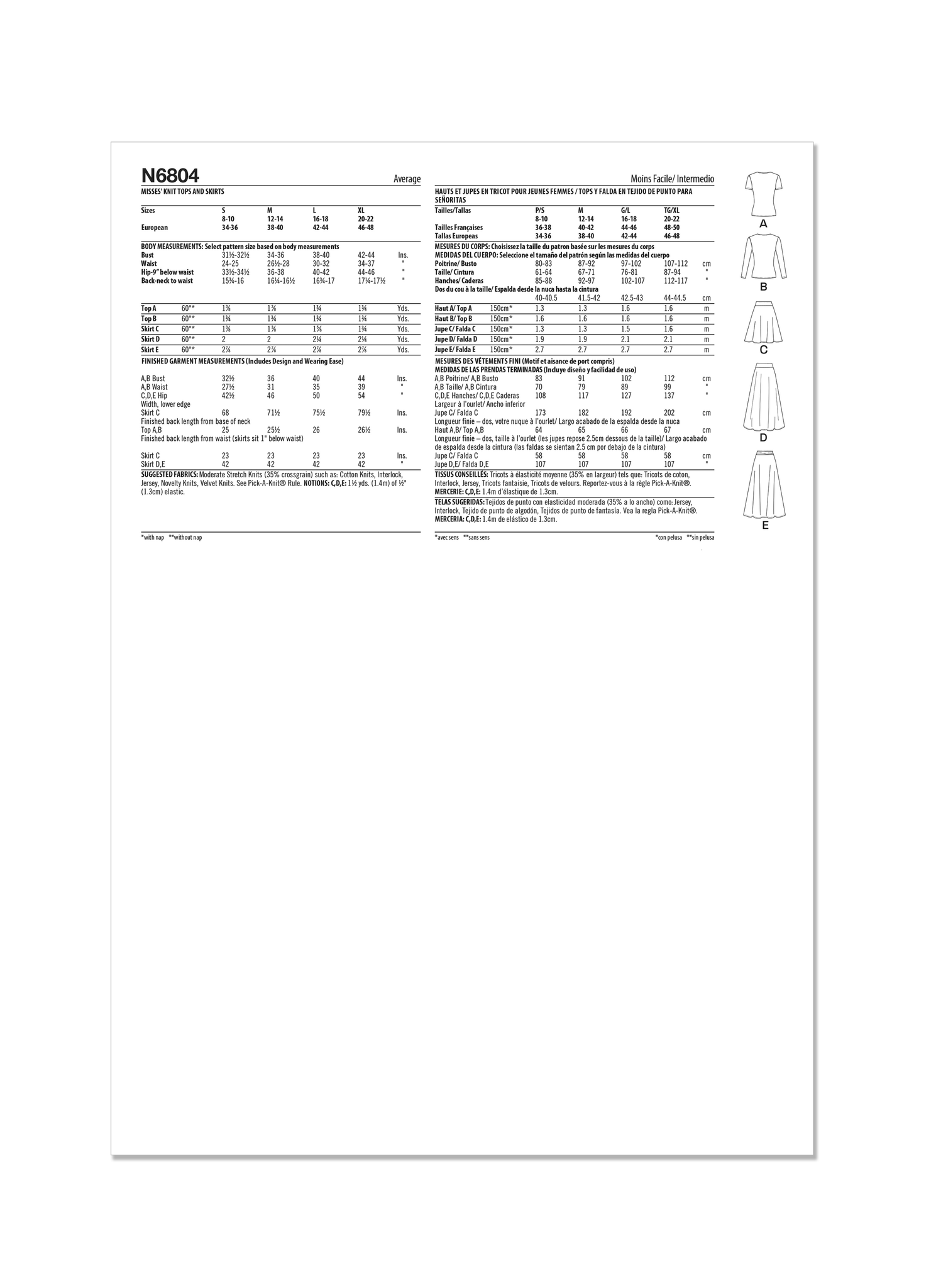New Look Sewing Pattern N6804 Misses’ Knit Tops and Skirts.