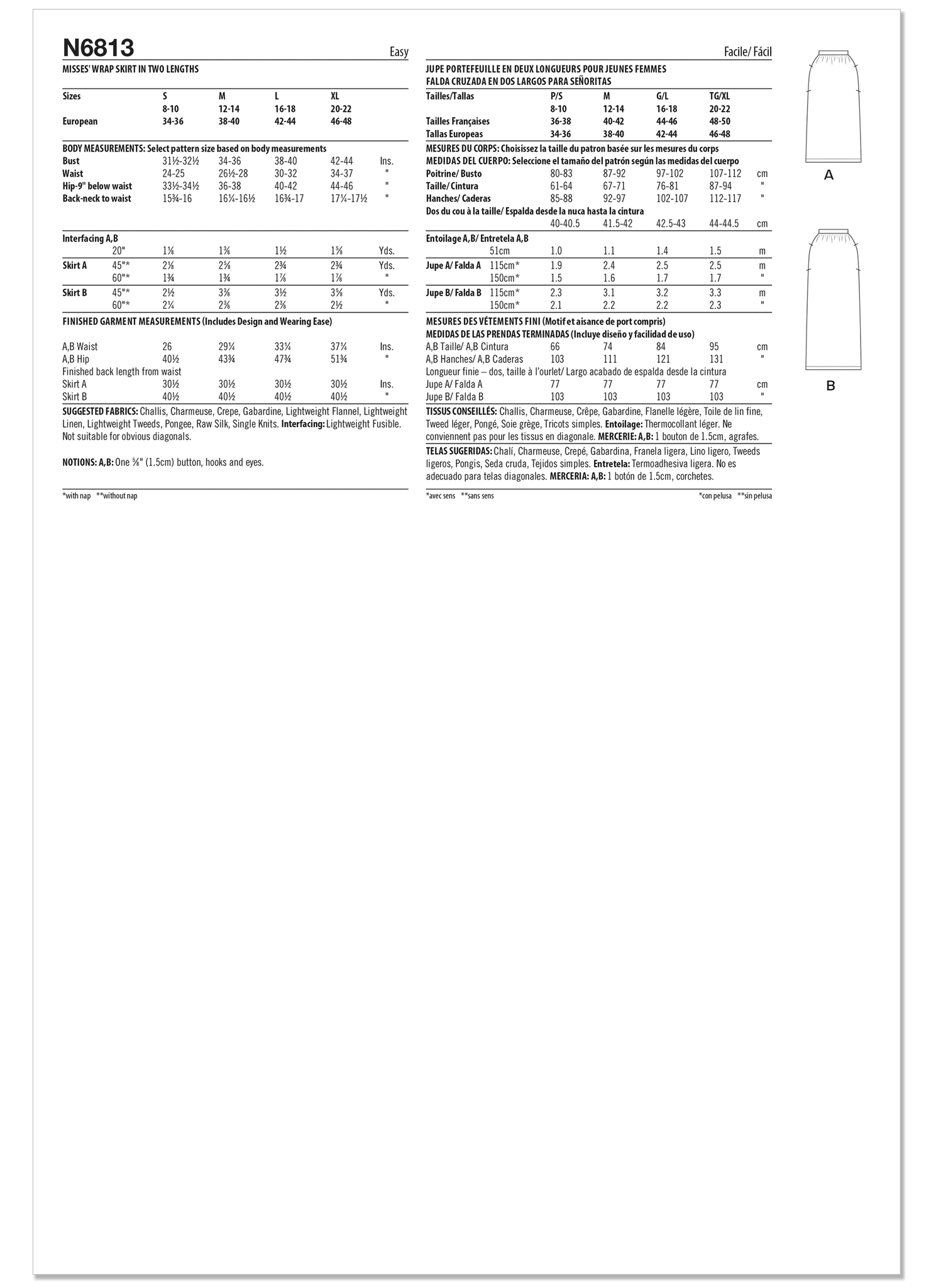 New Look Sewing Pattern N6813 Misses’ Wrap Skirt in Two Lengths.