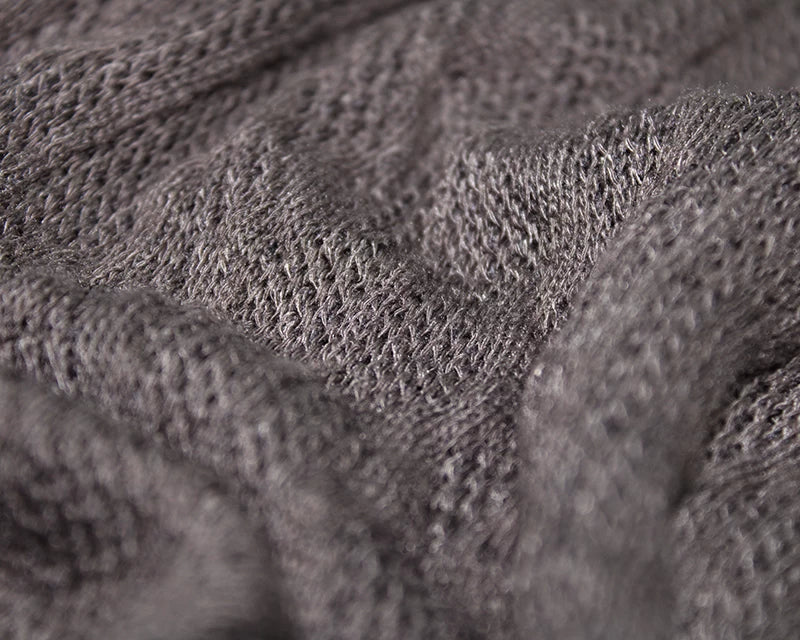 Cable Knit fabric is a double knit fabric. The wales in this fabric have a rope-like appearance, where they appear plaited.