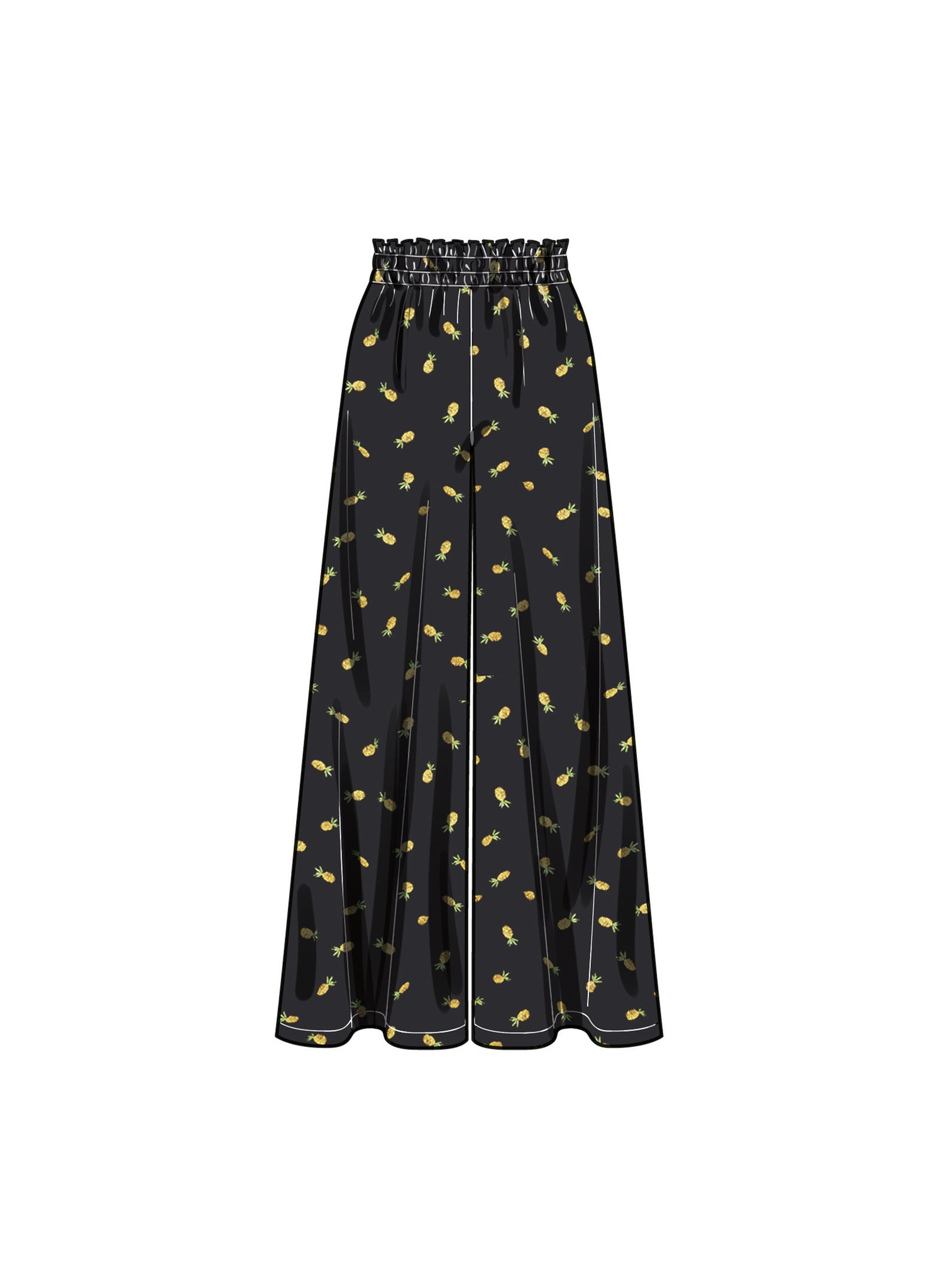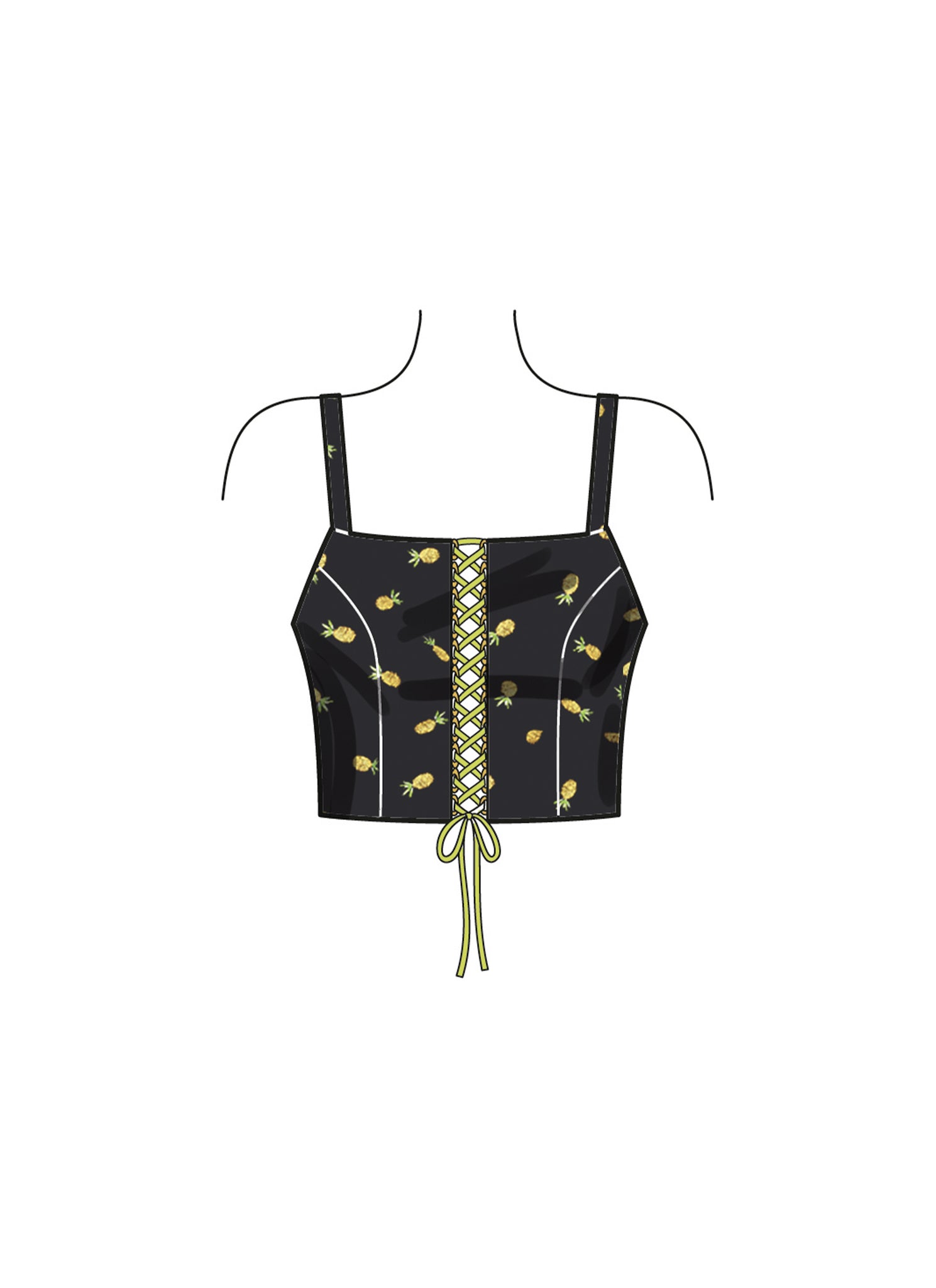 Bra top has front lace-up detail. Can be worn as a layering piece or as a cropped top. Wide leg pull-on trousers with high paper-bag waist. Side seam pockets.