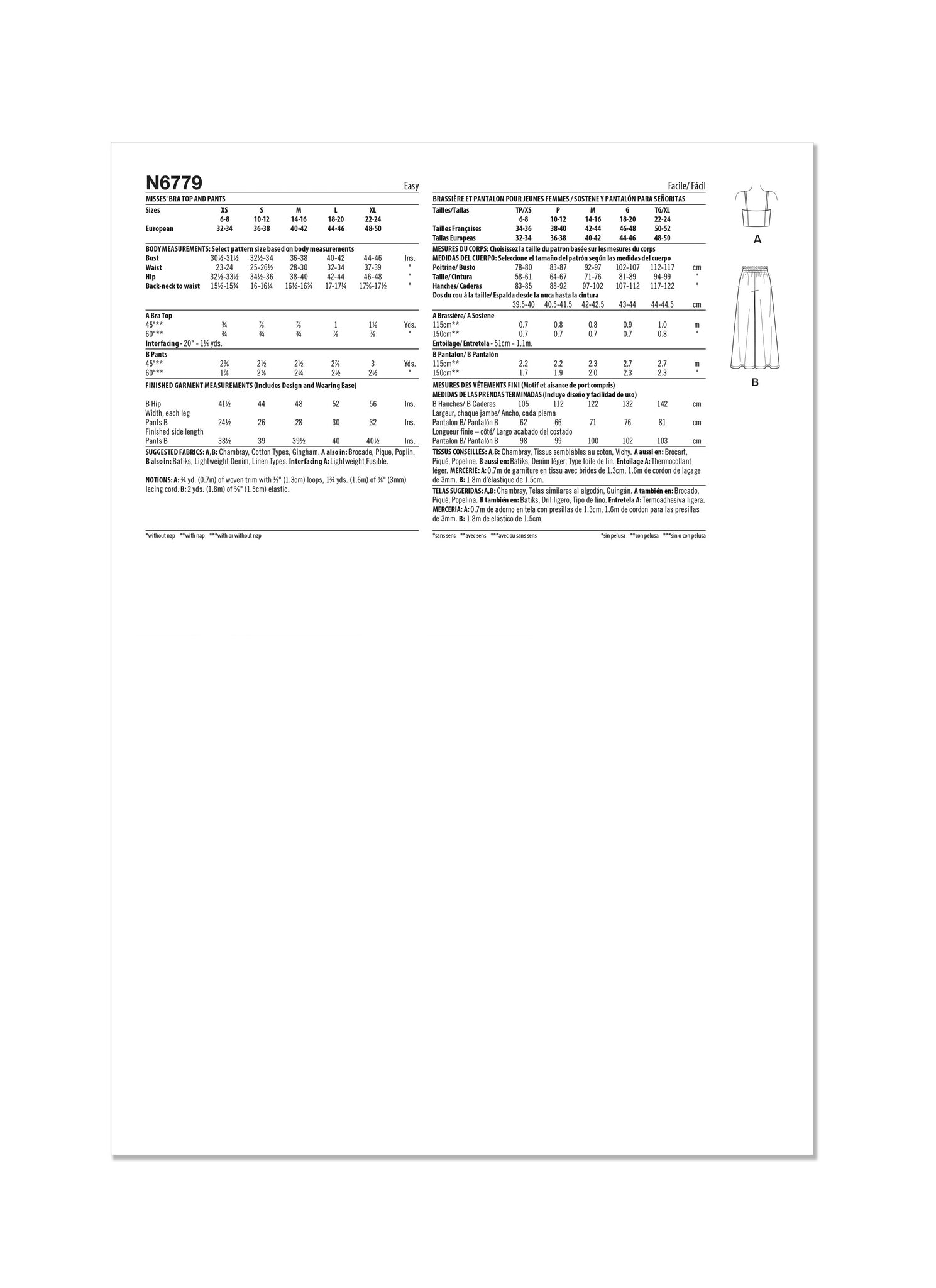 New Look Sewing Pattern N6779 Misses’ Bra Top and Trousers.