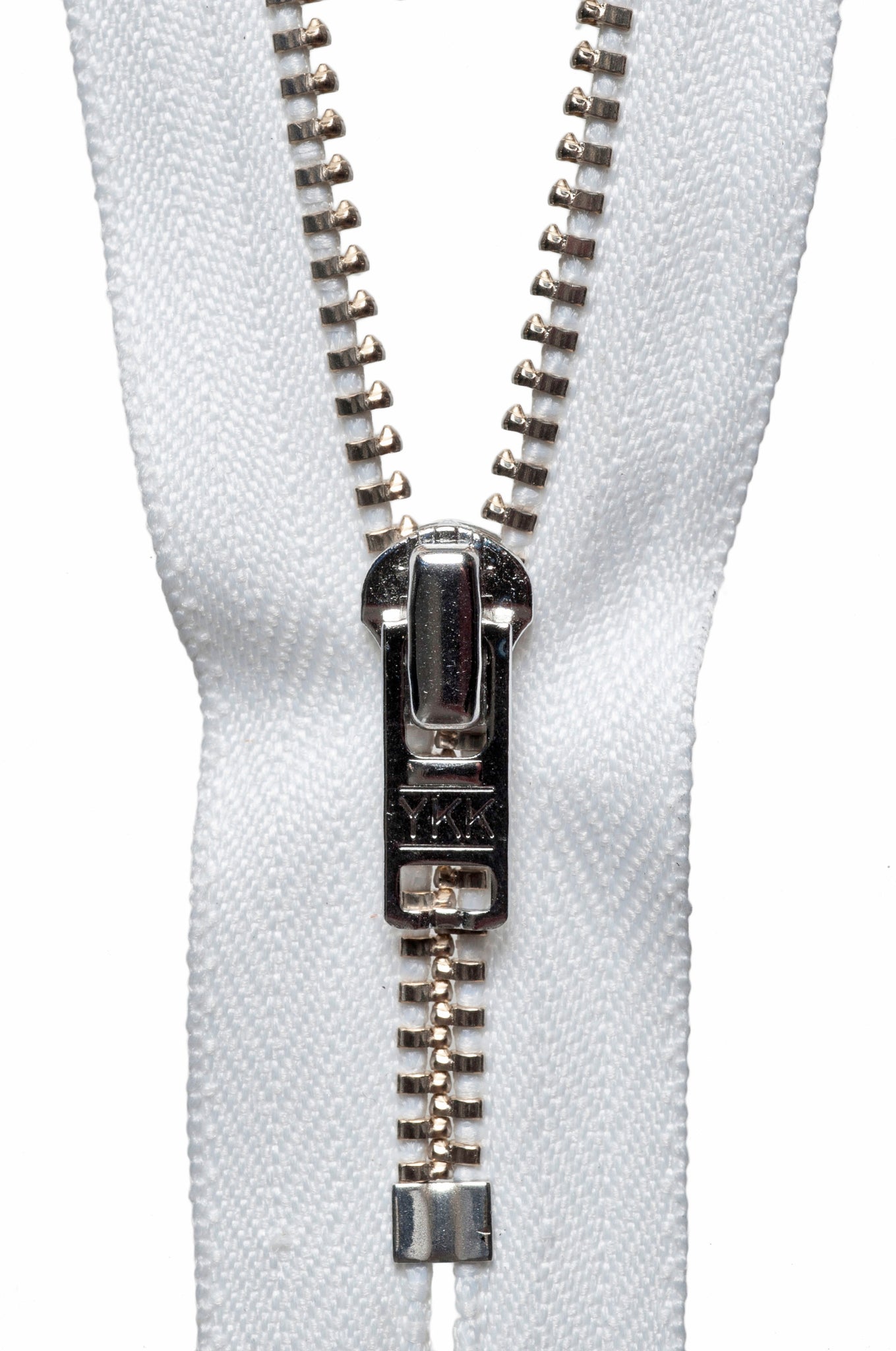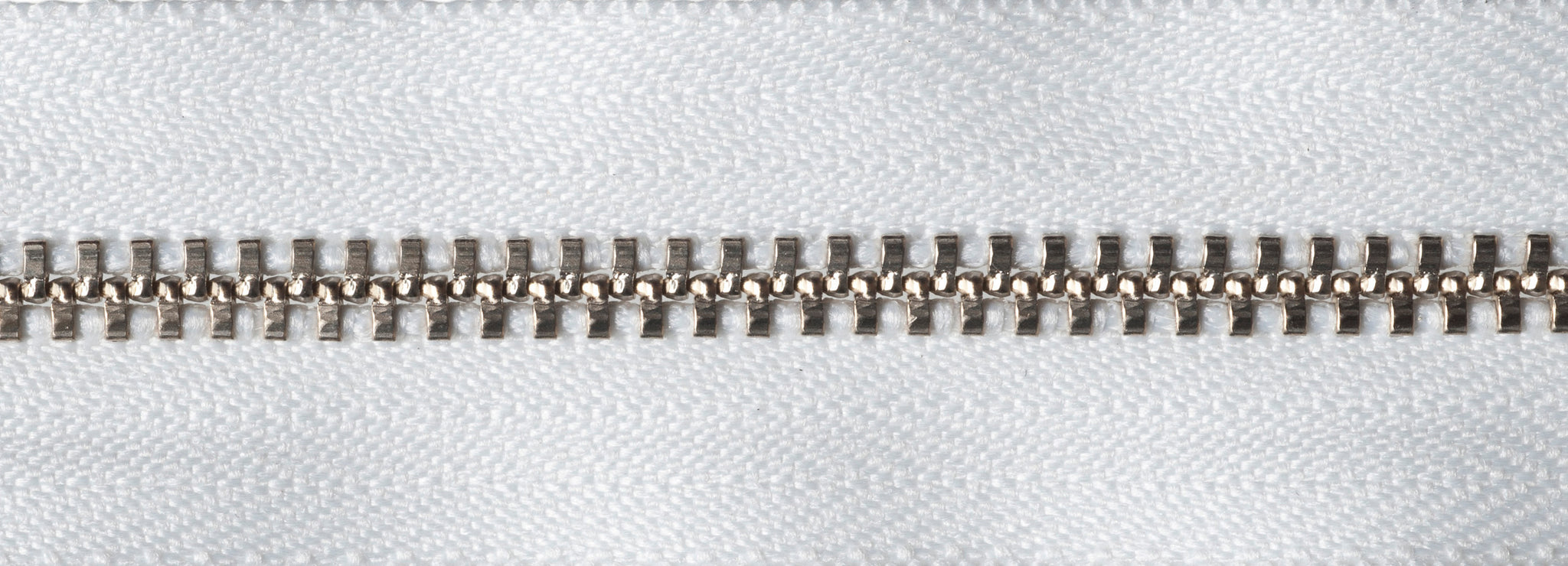 Strong metal tooth zip with auto-lock slider and heavy metal teeth.